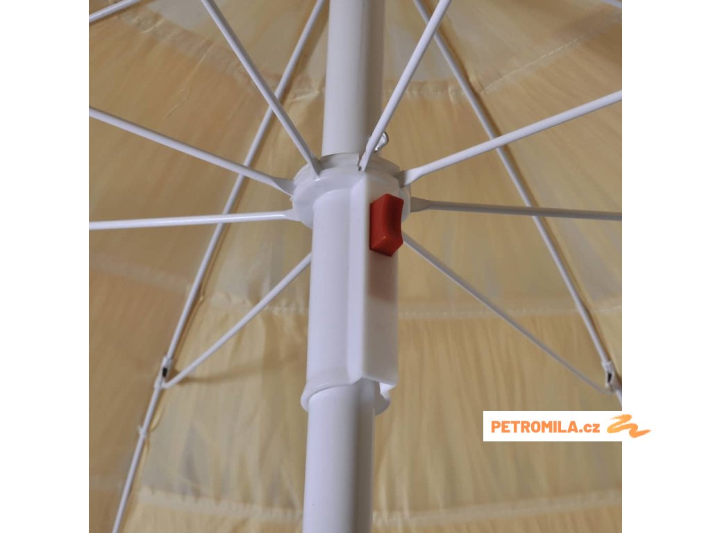 Slunečník se dá dle potřeby sklápět, aby účinně vrhal stín v různou denní dobu.