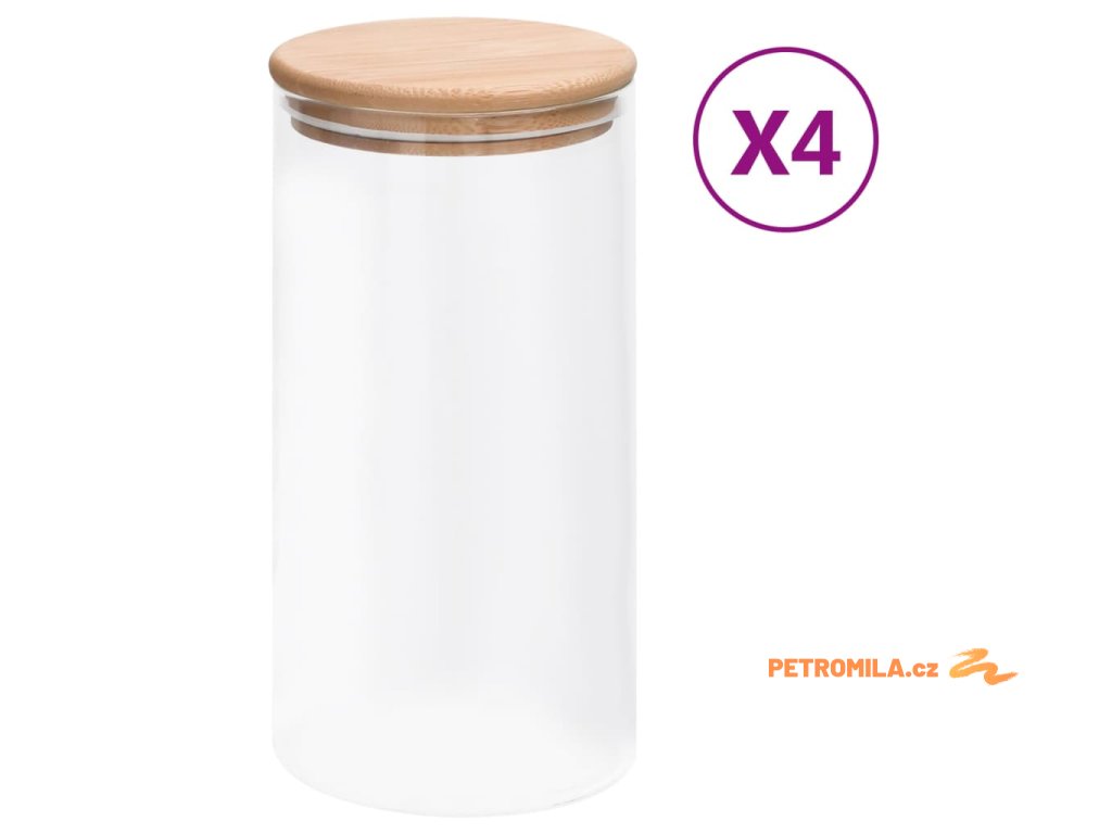Skleněné dózy s bambusovým víčkem 4 ks 1200 ml