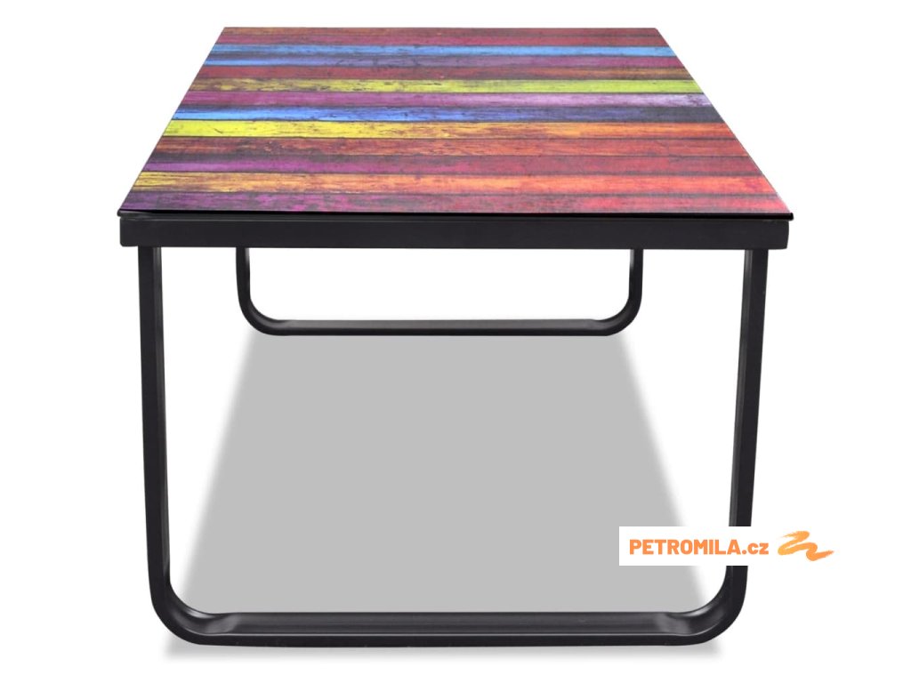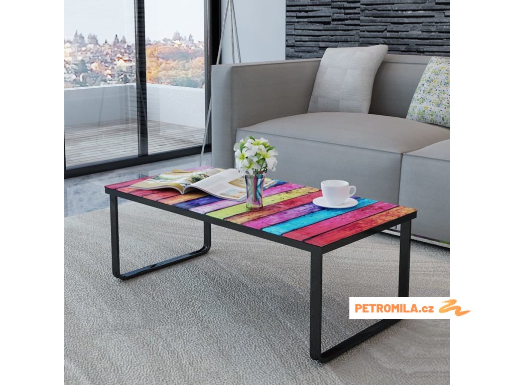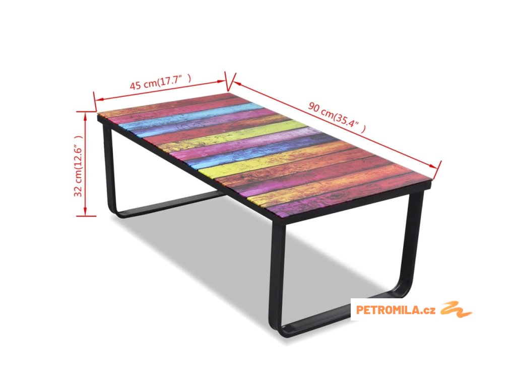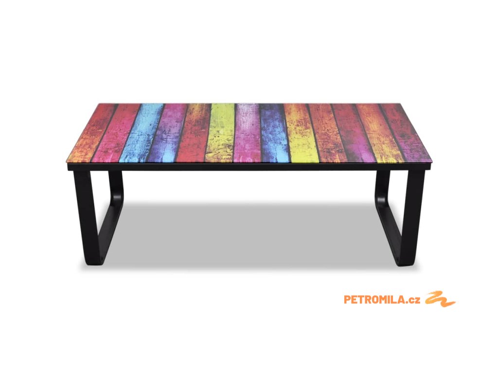 Tento obdélníkový konferenční stolek s duhovým potiskem na stolní desce má moderní, elegantní vzhled a bude se hodit k nábytku ve vašem domě. Můžete ho používat jako konferenční nebo jako odkládací stolek.