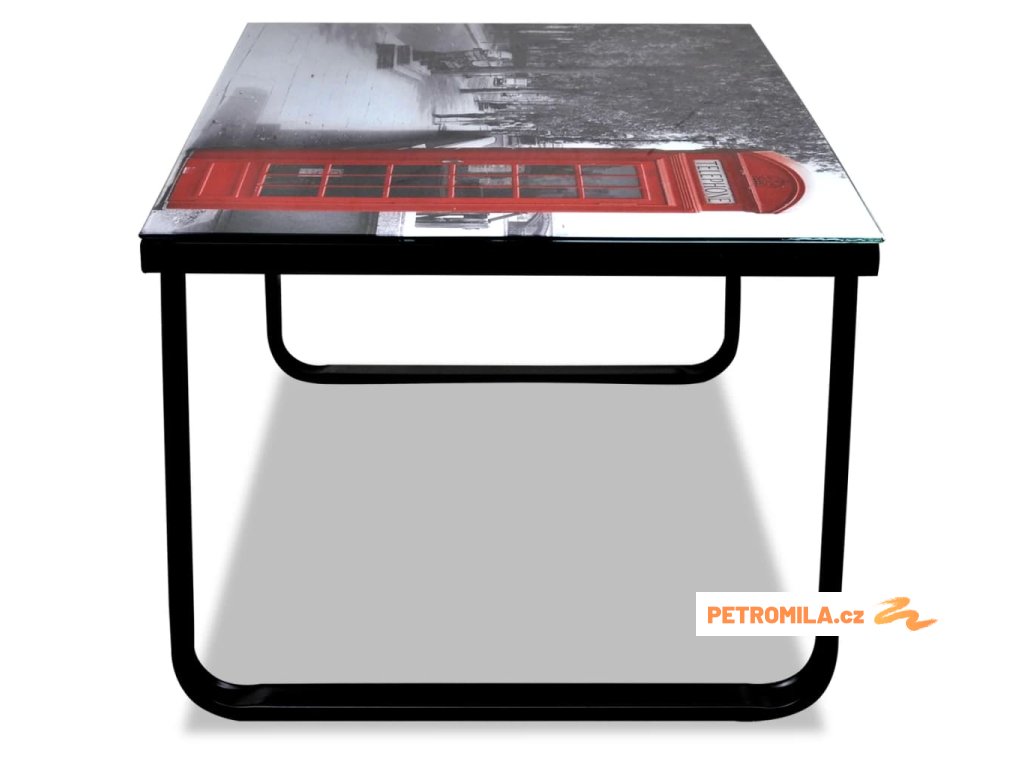 Tento obdélníkový konferenční stolek s potiskem s motivem telefonní budky na stolní desce má moderní, elegantní vzhled a bude se hodit k nábytku ve vašem domě. Můžete ho používat jako konferenční nebo jako odkládací stolek.