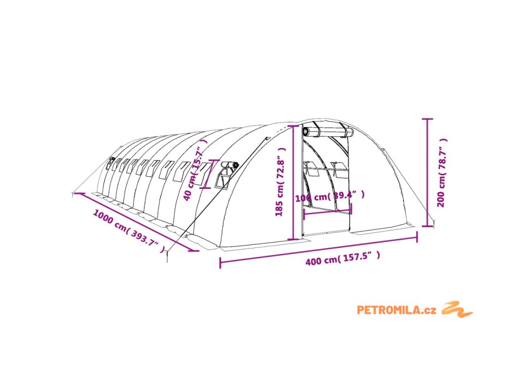 Skleník s ocelovým rámem bílý 40 m² 10 x 4 x 2 m