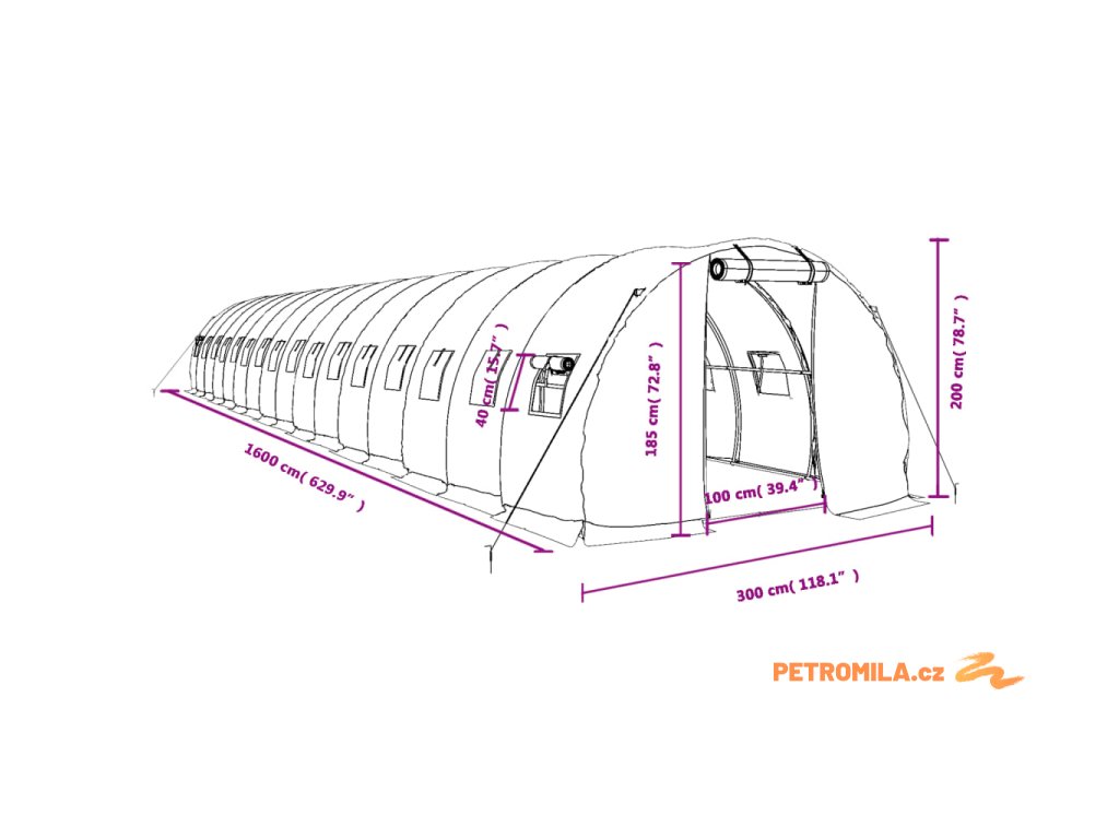 Skleník s ocelovým rámem bílý 48 m² 16 x 3 x 2 m