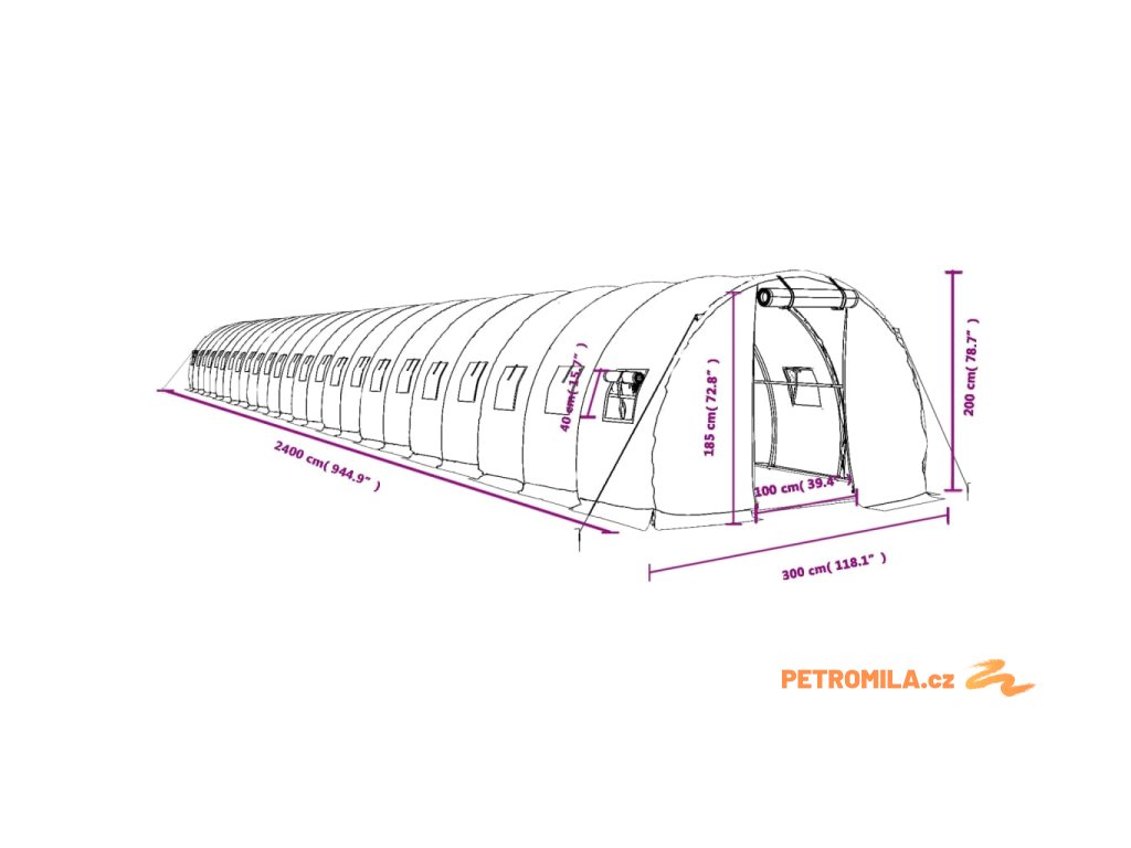 Skleník s ocelovým rámem bílý 72 m² 24 x 3 x 2 m