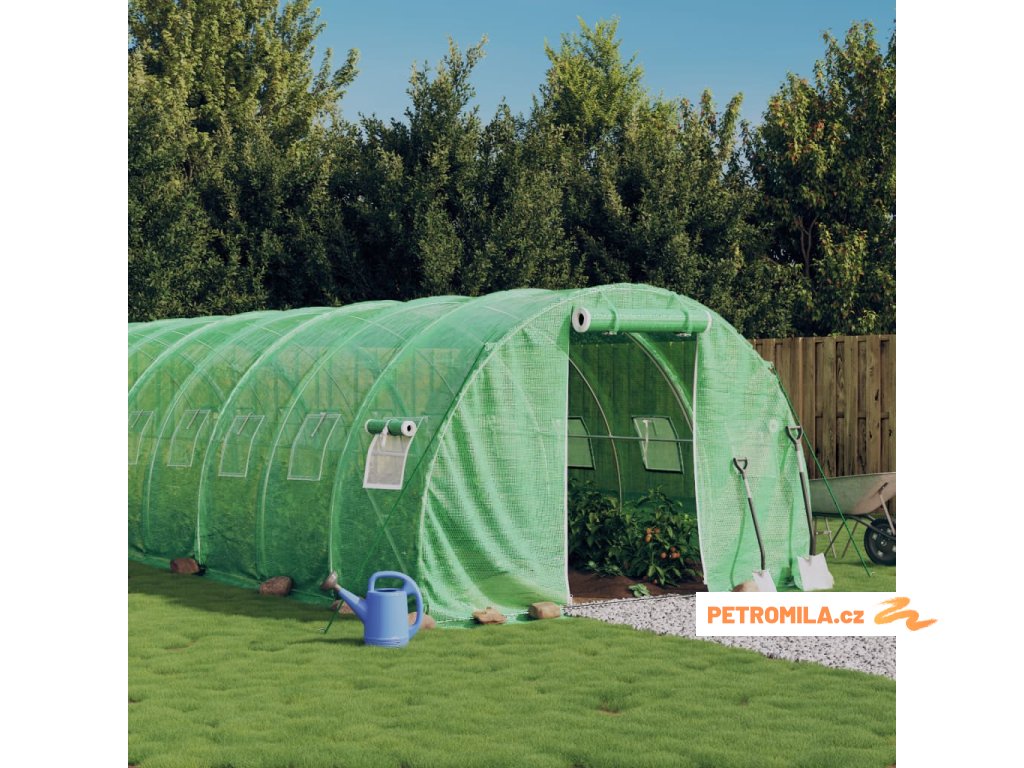 Skleník s ocelovým rámem zelený 30 m² 10 x 3 x 2 m