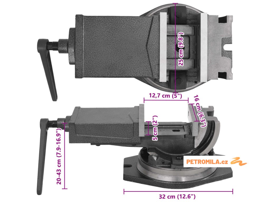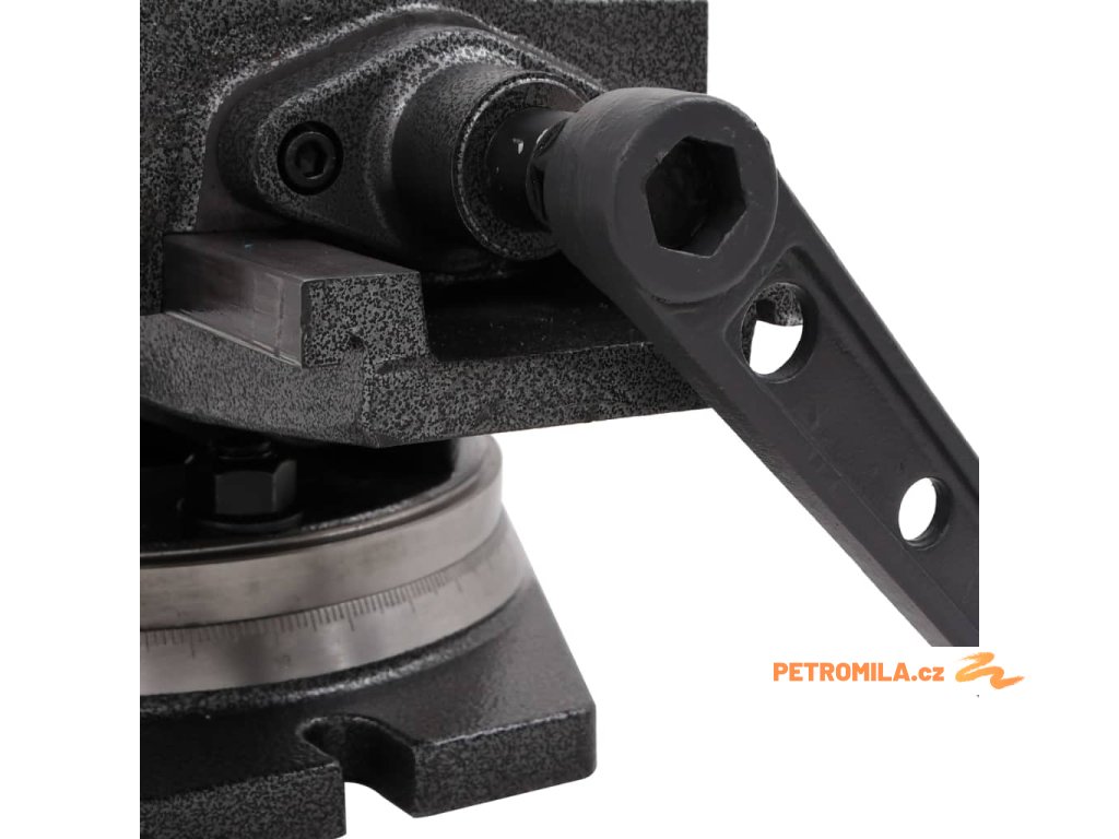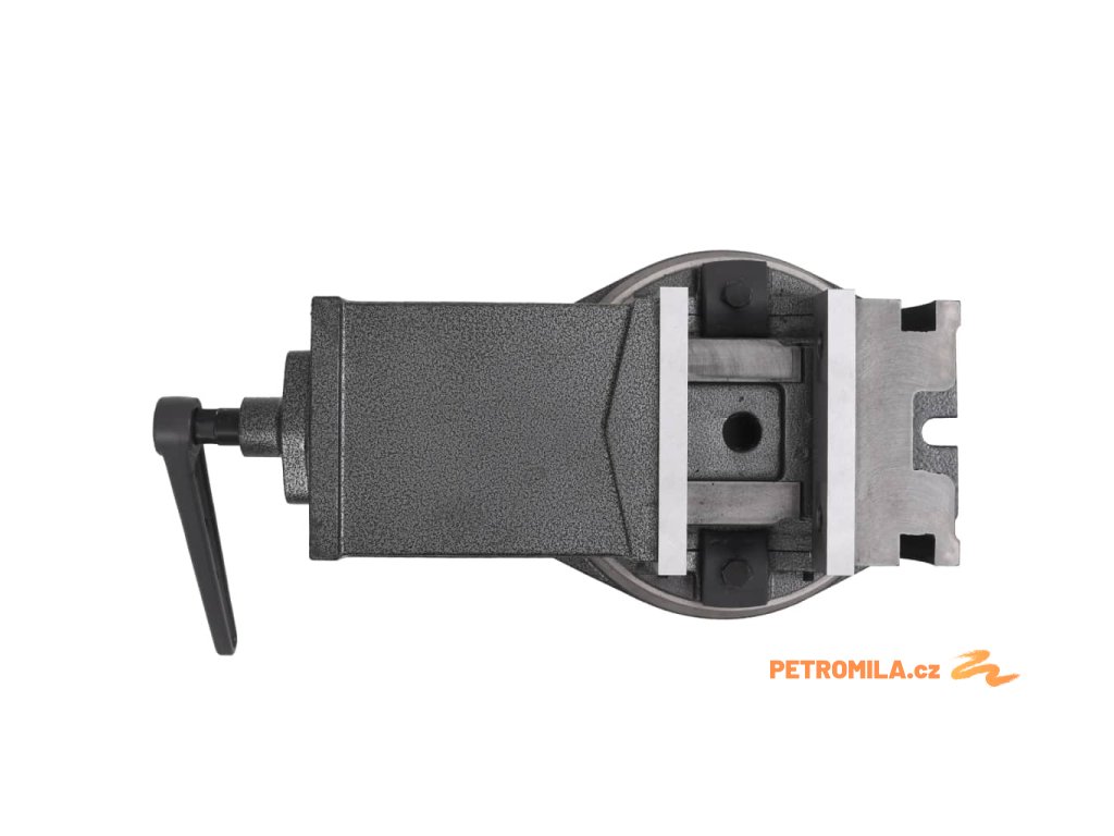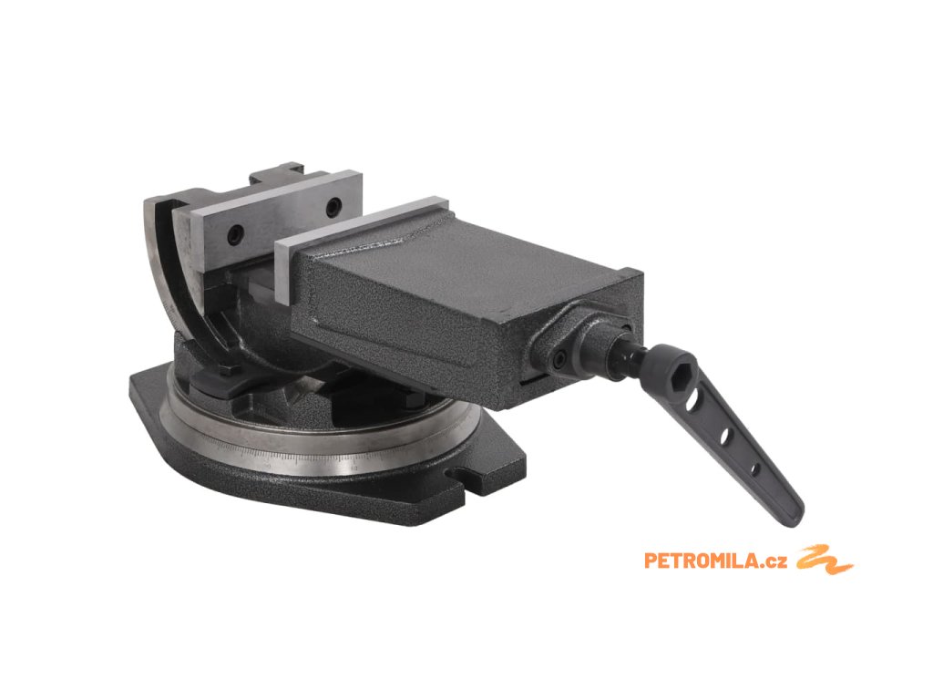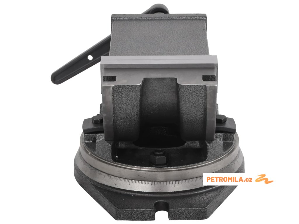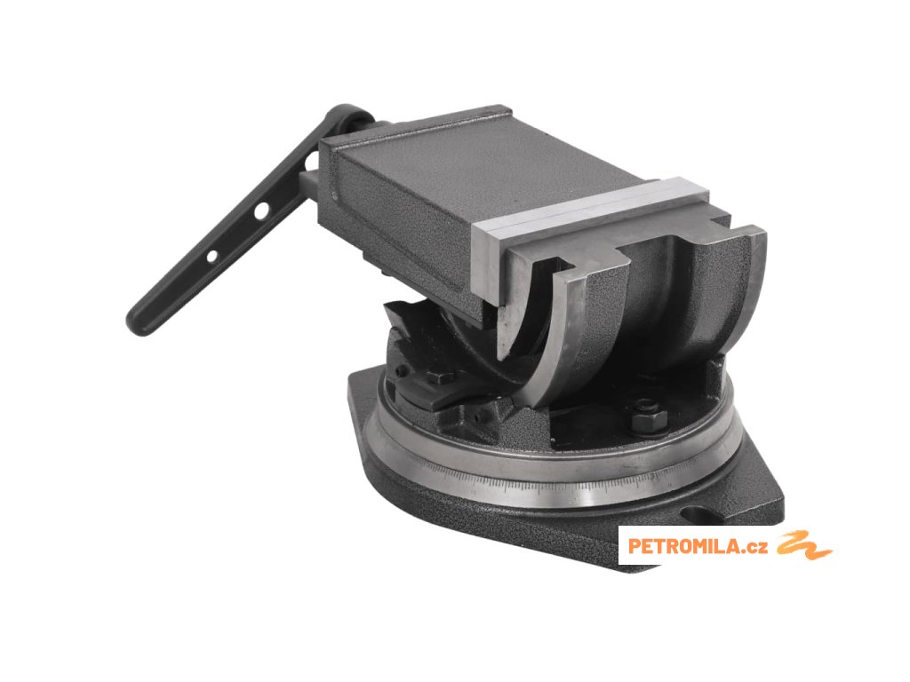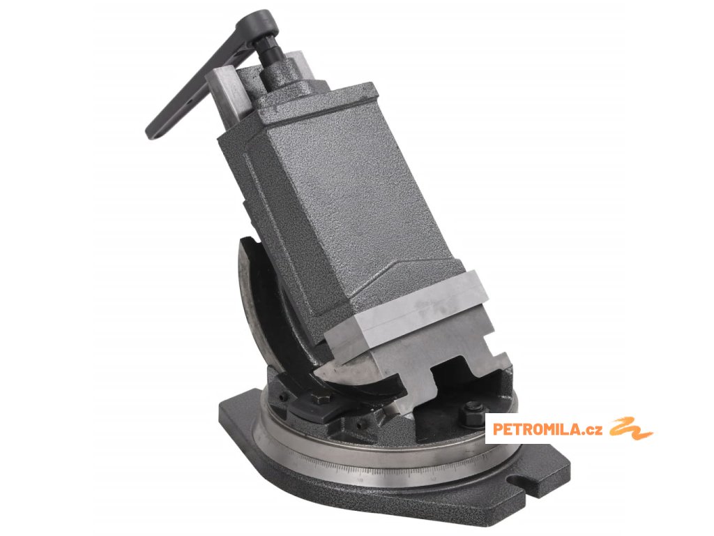 Masivní šroub vám umožní přizpůsobit rozpětí vašemu obrobku na míru. Čelisti jsou kalené, a proto mohou vyhovět i potřebám náročného vrtání a frézování. Dvojosé uchycení a jemně dělená stupnice umožňují sklon 0–90°, který je možné zajistit upínací pákou.
