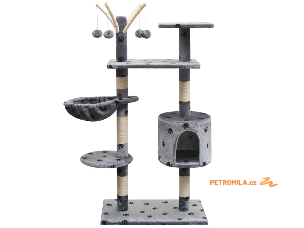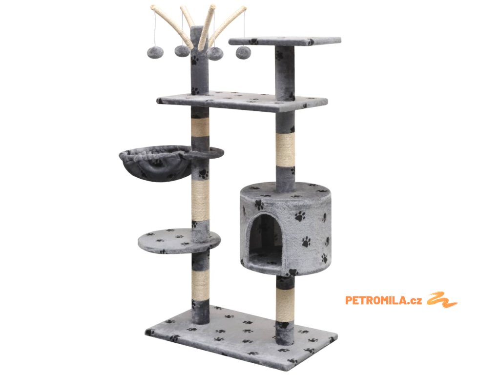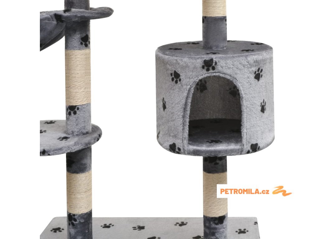 Škrabadlo pro kočky, sisalové sloupky 125 cm šedá potisk tlapek