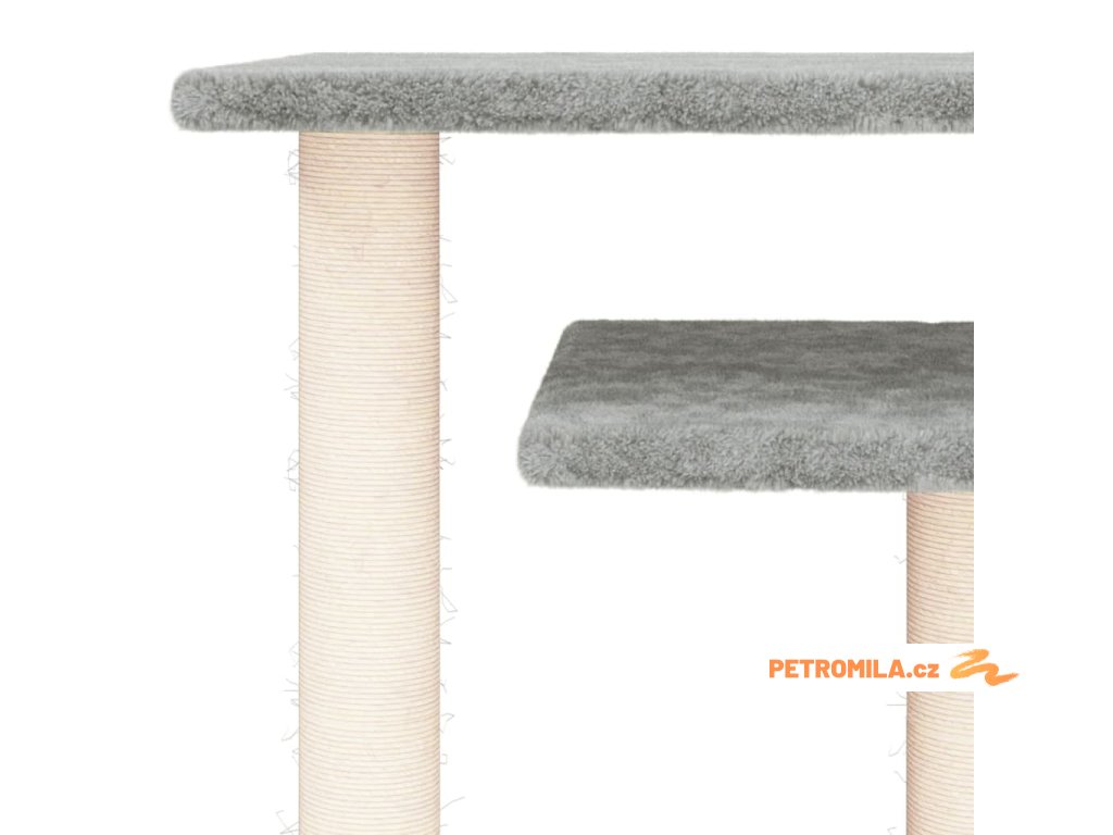 - Sloupek z přírodního sisalu: Odolné a pevné sloupky s přírodním sisalem tohoto škrabadla dokonale uspokojí škrabací instinkt koček a zabrání jim poškrábat váš nábytek.