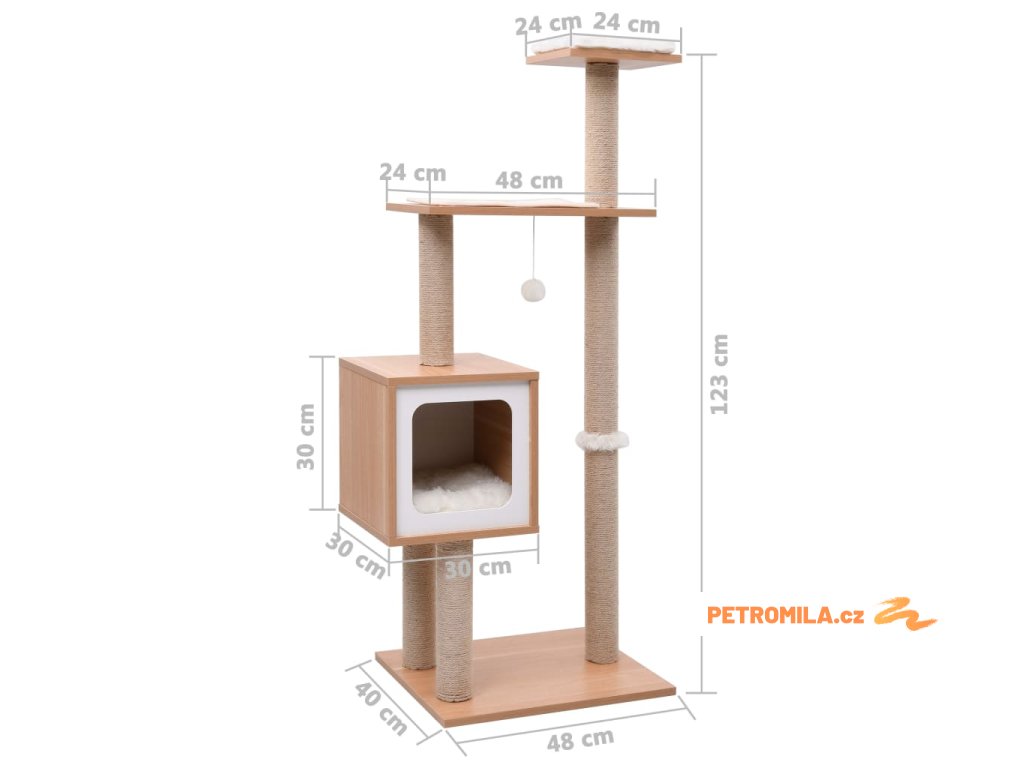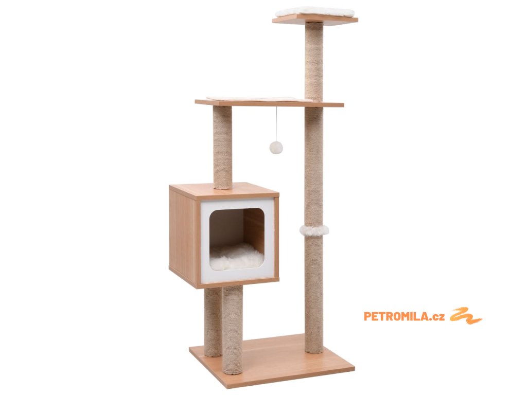 Na tomto krásném kočičím škrabadle si vaše kočky budou moci brousit drápky, posedávat, schovávat se, šplhat a relaxovat podle libosti. Skvěle se hodí do každého stylu zařízení.
