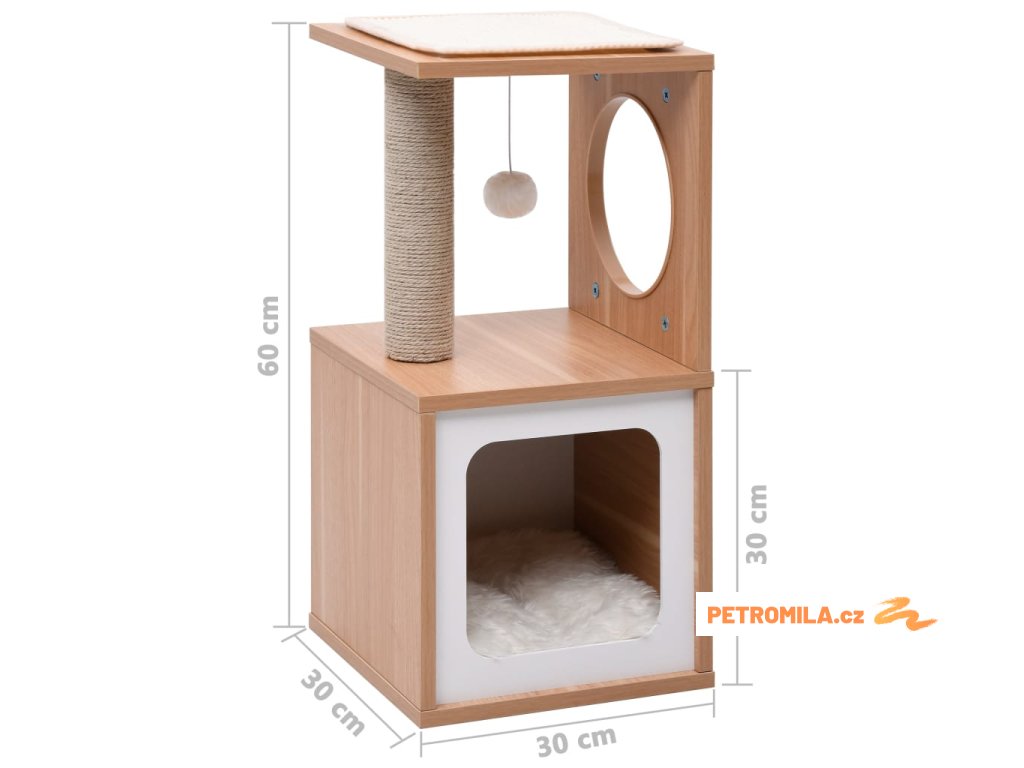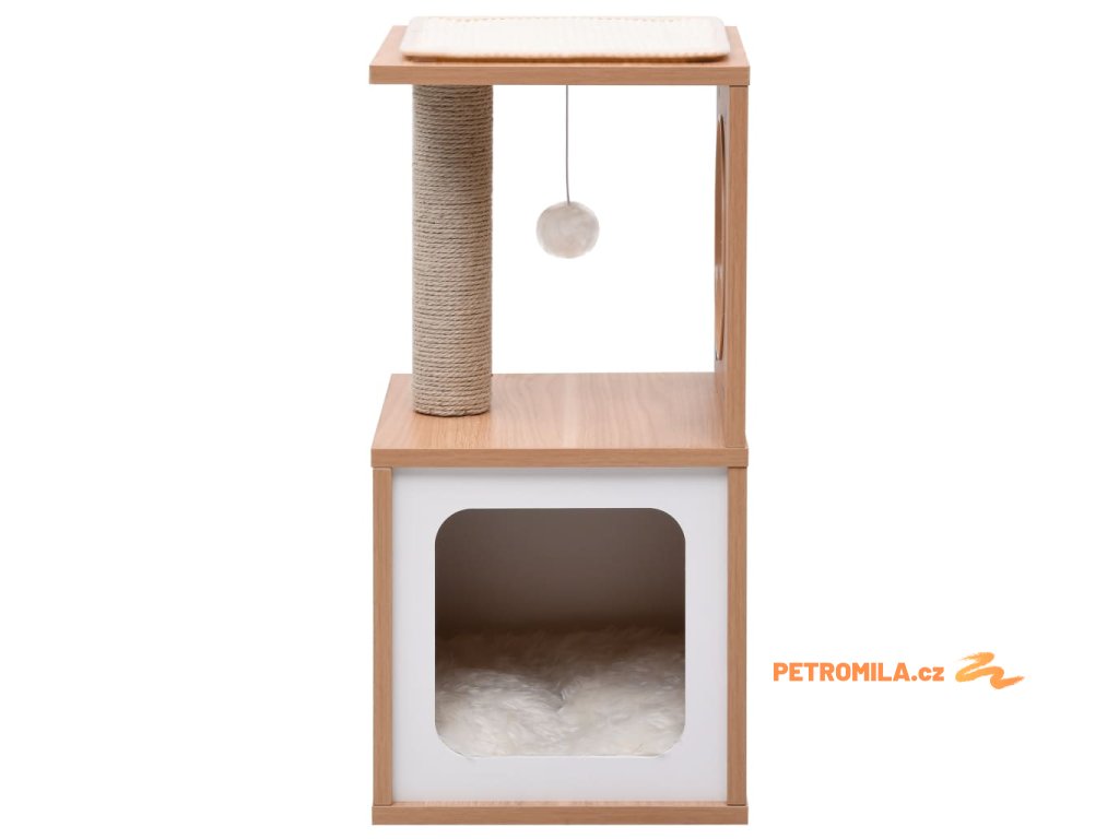 Na tomto krásném kočičím škrabadle si vaše kočky budou moci brousit drápky, posedávat, schovávat se, šplhat a relaxovat podle libosti. Skvěle se hodí do každého stylu zařízení.