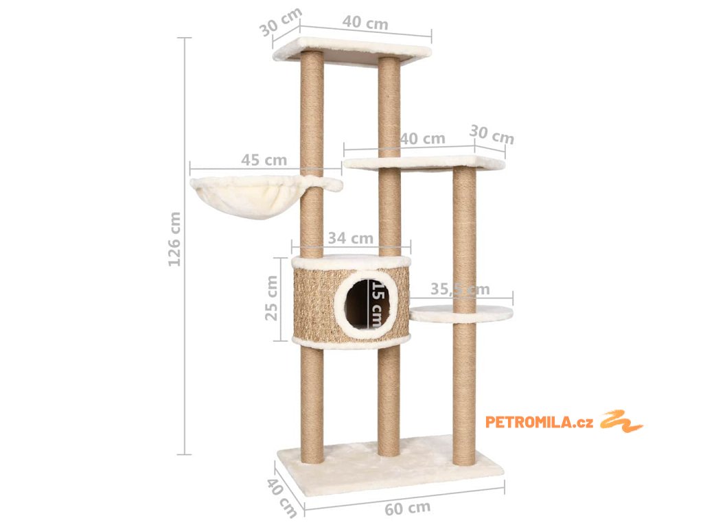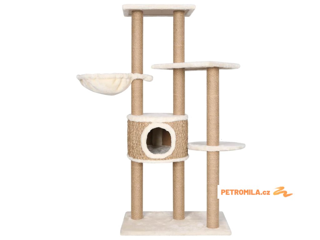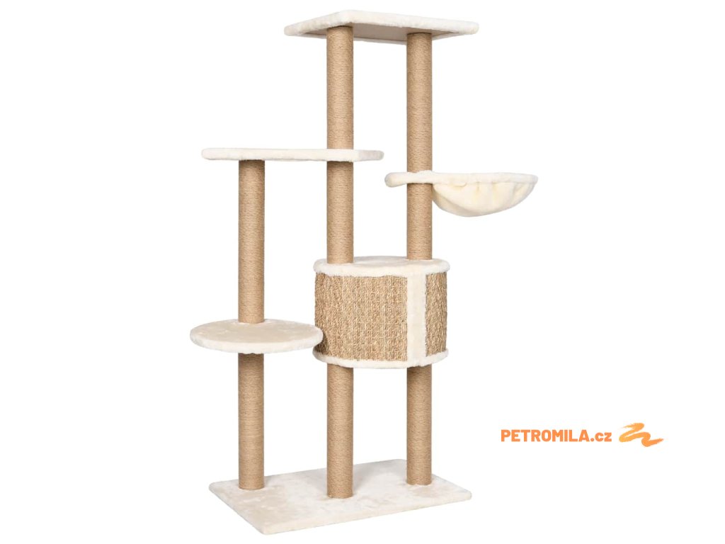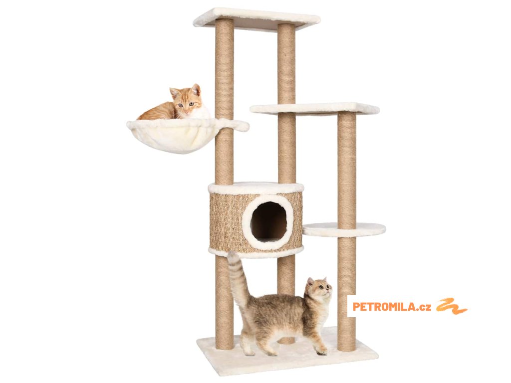 Vysoký strom pro kočky obsahuje několik plošin, košíků a pelíšků, takže vaše kočky mají vše, aby si mohly škrábat drápky, vyhlížet po okolí, šplhat a také relaxovat, co si srdce ráčí. Sloupky škrabadla jsou omotané mořskou trávou, na které si vaše zvířat mohou naostřit drápky. Má několik plošin, které vašim chlupatým přátelům poskytnou útulné místo k odpočinku nebo zdřímnutí.