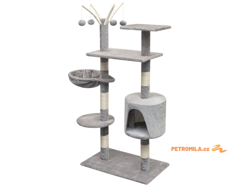 - S domečkem, závěsným pelíškem, škrabacími sloupky, hračkami a plošinami