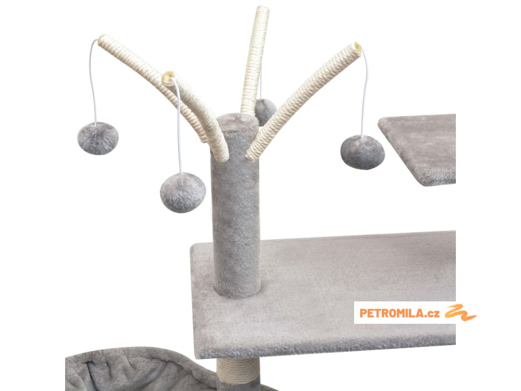 Vaši chlupatí kamarádi si mohou brousit drápky na tomto kočičímu škrabadle obaleném sisalovým provázkem, které kočkám dává možnost používat přirozené škrabací instinkty. Kočičky se také budou moci po stromě navzájem honit nahoru a dolů. Na samotném vršku jsou zavěšené hračky, které zaujmou všechny zvídavé mazlíčky. Pro odpočinek mohou kočky využít plošiny, ze kterých budou mít krásný rozhled. Mohou se také ukrýt v útulných domečcích a dokonce v nich i spát. Krom toho jsme pro ně připravili i pohodlný závěsný pelíšek.