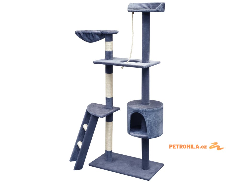 Škrabadlo pro kočky se sisalovými sloupky, 150 cm, tmavě modrá