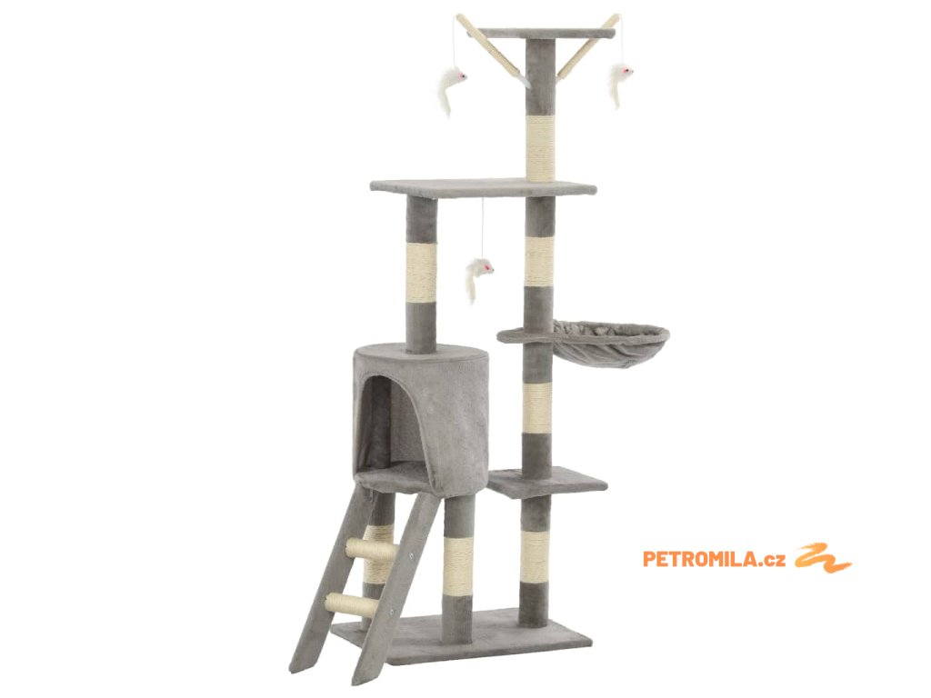 Škrabadlo pro kočky se sisalovými sloupky 138 cm šedé
