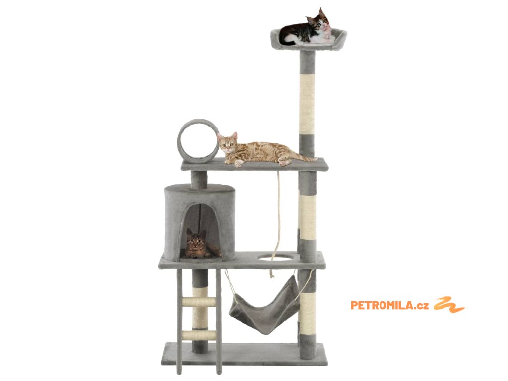 Škrabadlo pro kočky se sisalovými sloupky 140 cm šedé