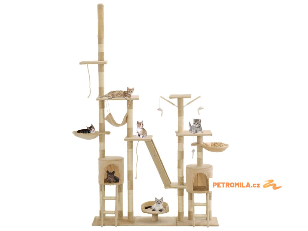 Škrabadlo pro kočky se sisalovými sloupky 230-250 cm béžové