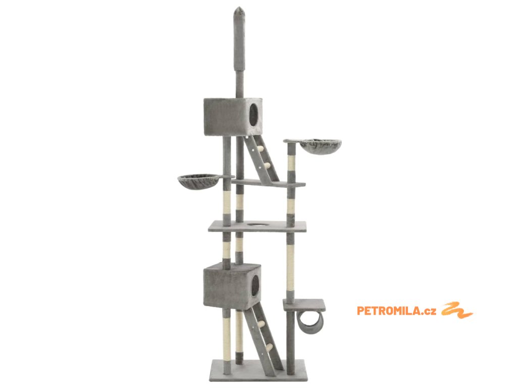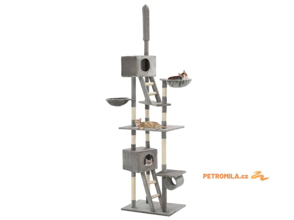 Škrabadlo pro kočky se sisalovými sloupky 230–260 cm šedé