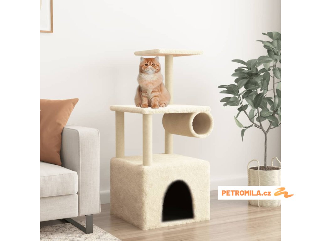 Škrabadlo pro kočky se sisalovými sloupky krémové 109,5 cm