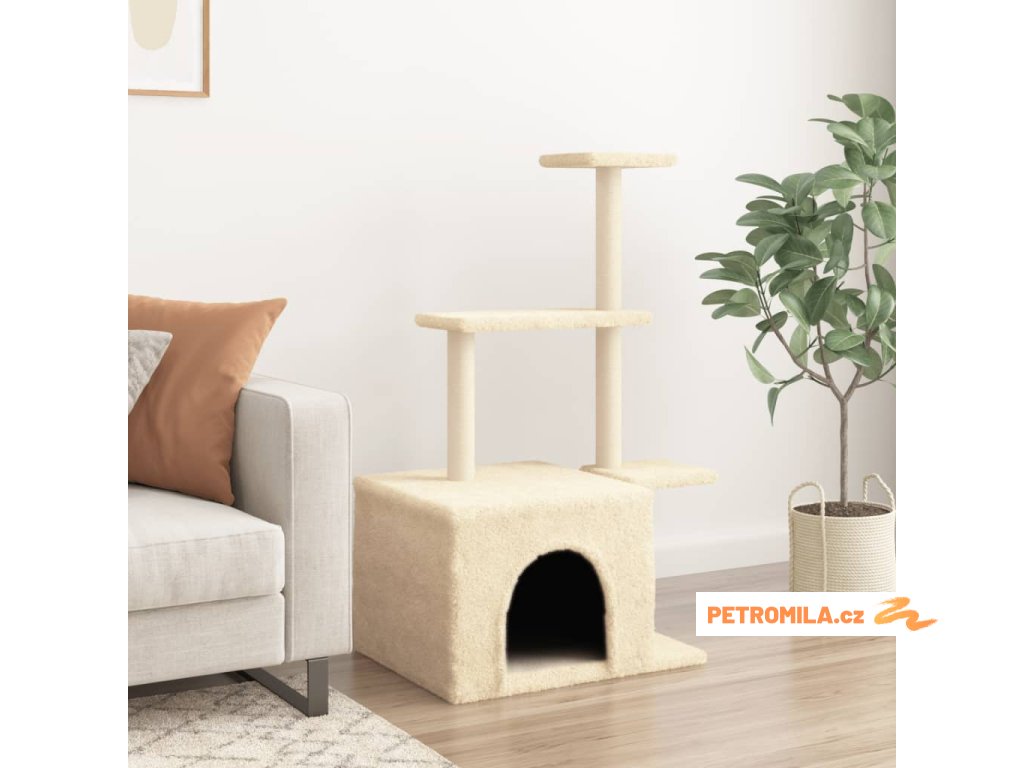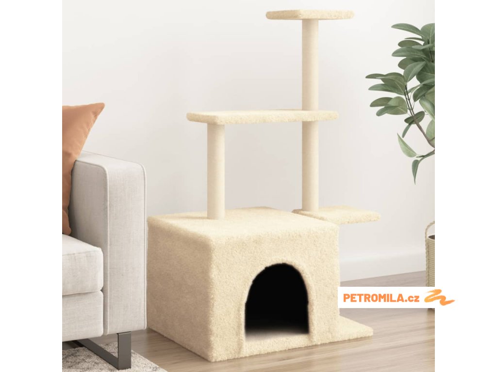Škrabadlo pro kočky se sisalovými sloupky krémové 110 cm