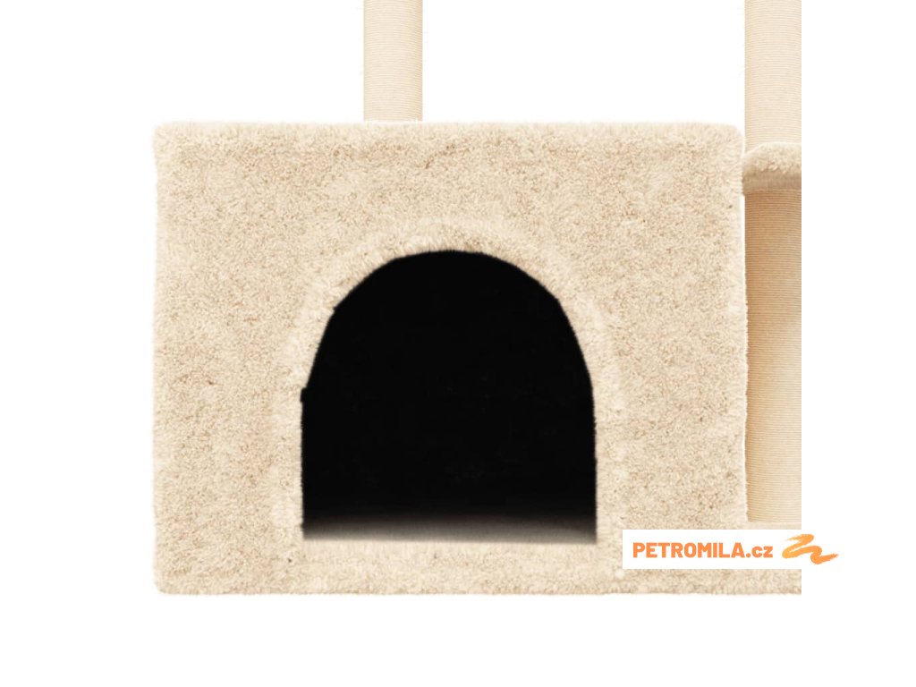 - Přírodní sisalové sloupky: Odolné a pevné sloupky s přírodním sisalem tohoto škrabadla dokonale uspokojí škrabací instinkt koček a zabrání jim poškrábat váš nábytek.