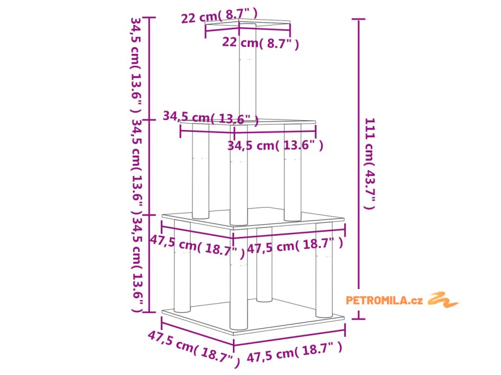 - Víceúrovňová kočičí věž: Víceúrovňový nábytek pro kočky je navržen s plošinami, které poskytují kočkám ideální místo pro šplhání, sezení, škrábání, schovávání se a také k odpočinku.