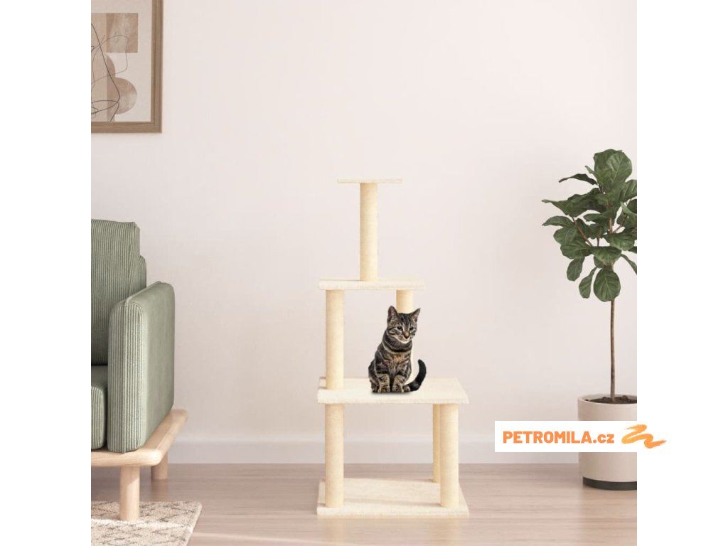 Škrabadlo pro kočky se sisalovými sloupky krémové 111 cm