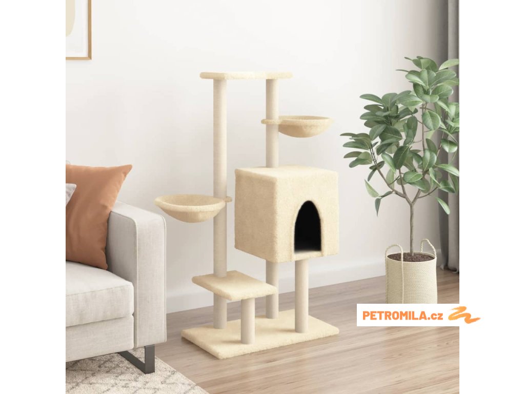 Škrabadlo pro kočky se sisalovými sloupky krémové 117 cm