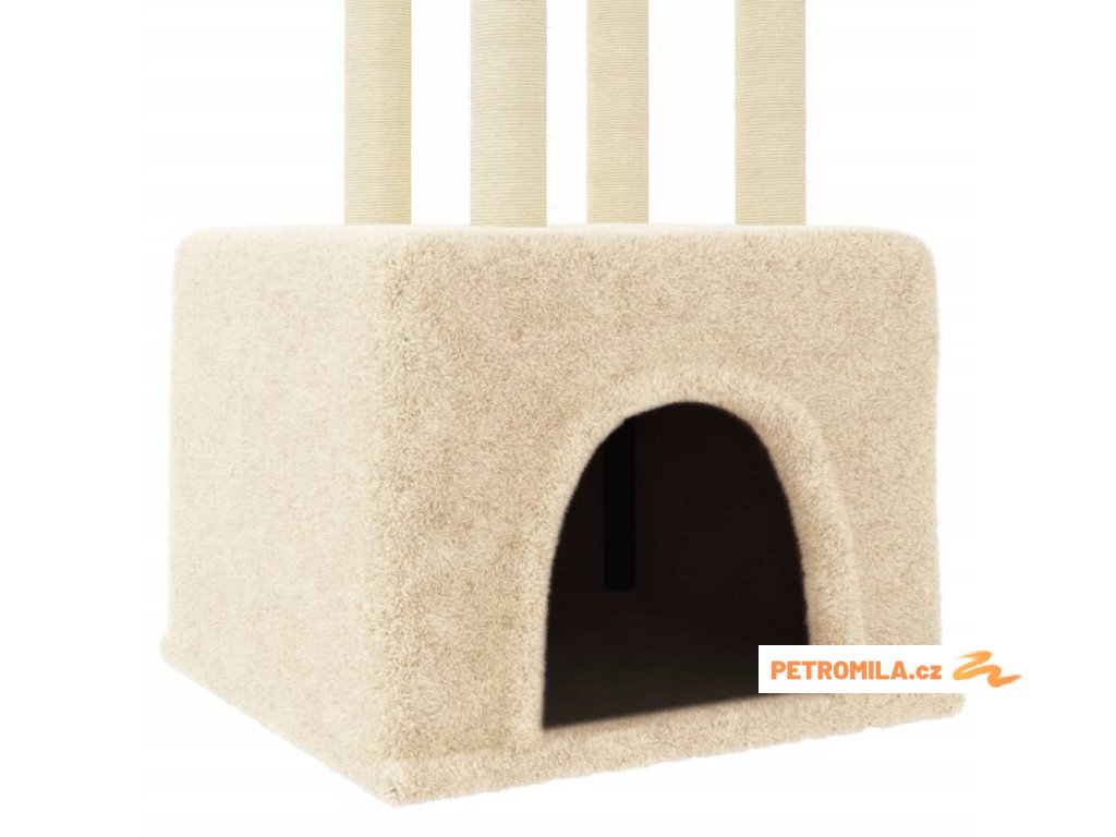 - Přírodní sisalové sloupky: Odolné a pevné sloupky s přírodním sisalem tohoto škrabadla dokonale uspokojí škrabací instinkt koček a zabrání jim poškrábat váš nábytek.
