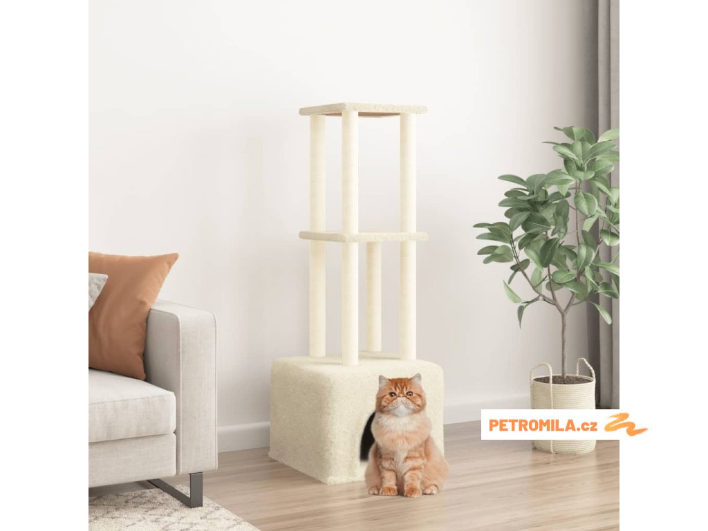 Škrabadlo pro kočky se sisalovými sloupky krémové 133,5 cm