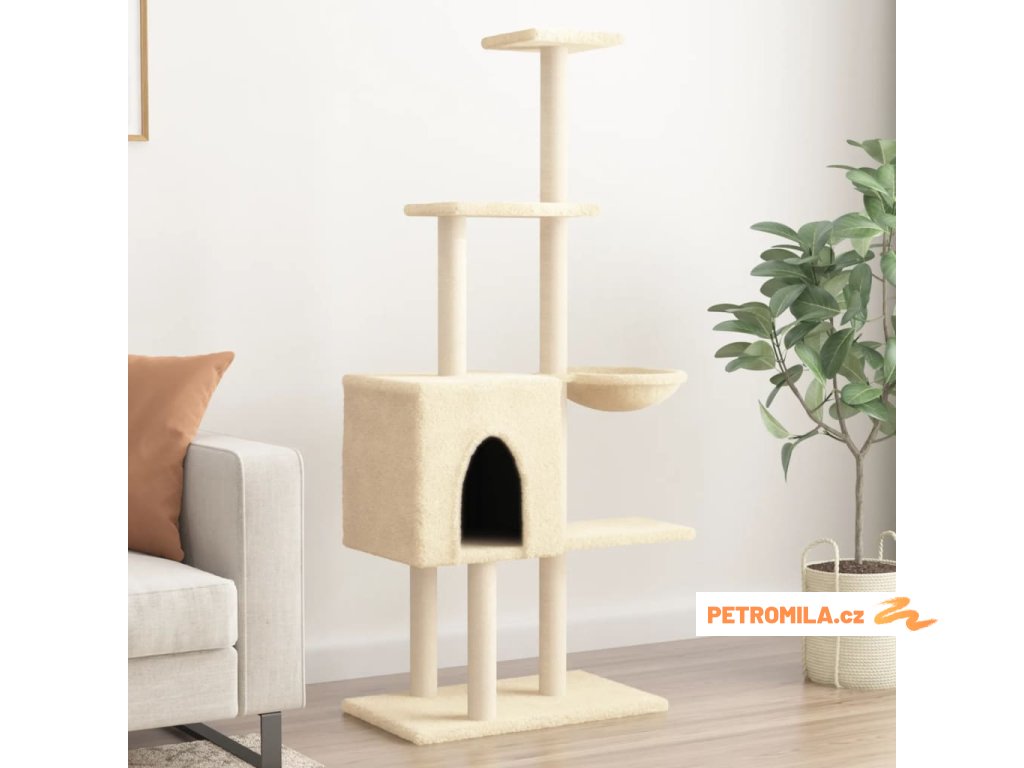 Škrabadlo pro kočky se sisalovými sloupky krémové 145 cm