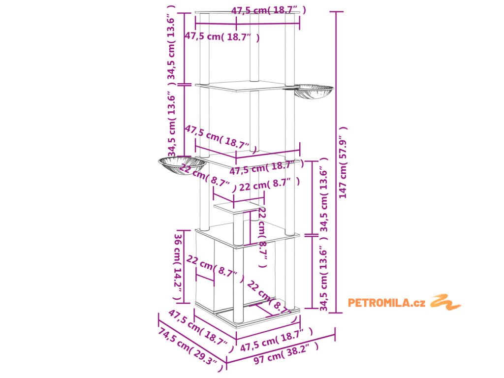 - Všestranná věž pro kočky: Víceúrovňový nábytek pro kočky je navržen se 2 koši, domečkem a plošinami, které poskytují kočkám ideální místo pro šplhání, sezení, škrábání, schovávání se a také k odpočinku.