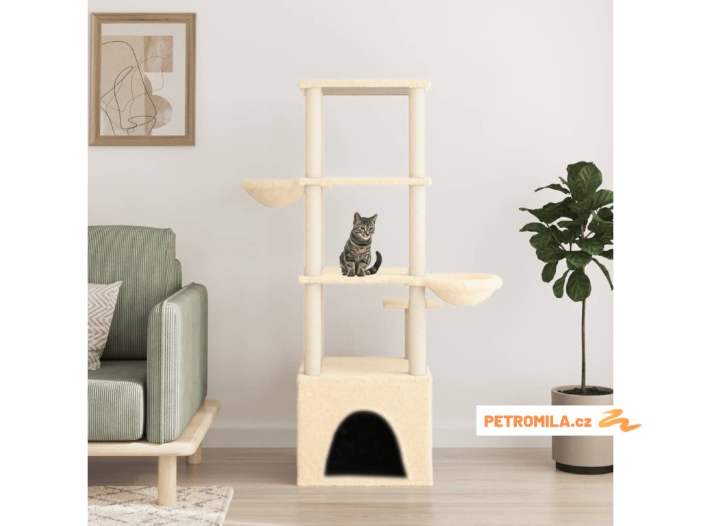 Škrabadlo pro kočky se sisalovými sloupky krémové 147 cm