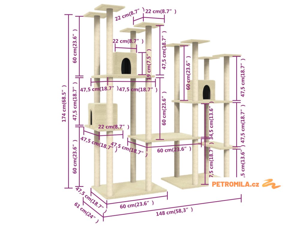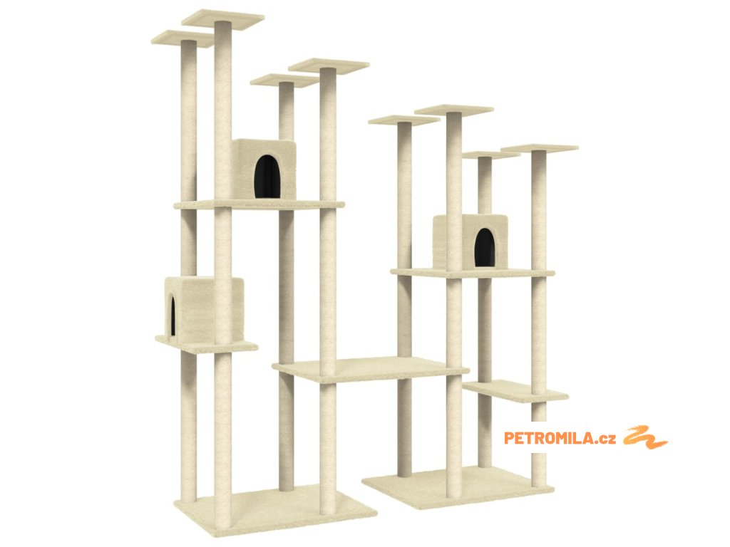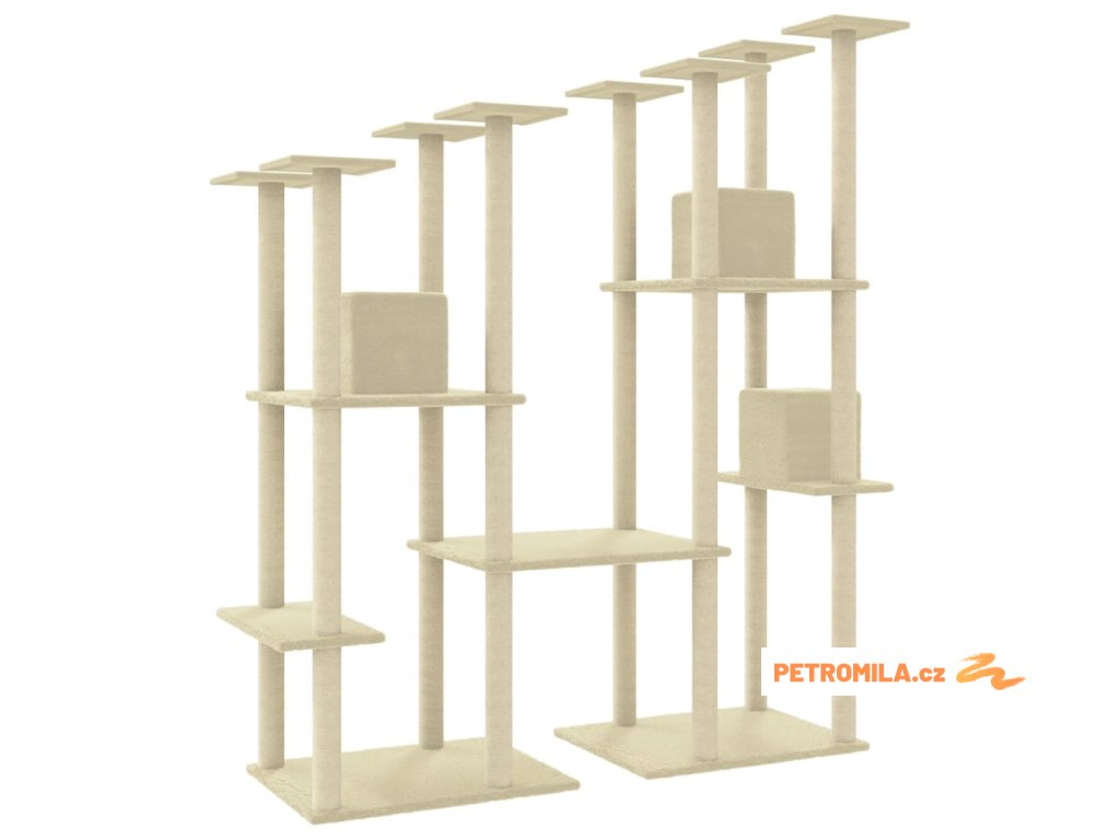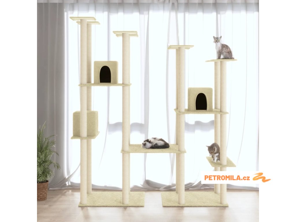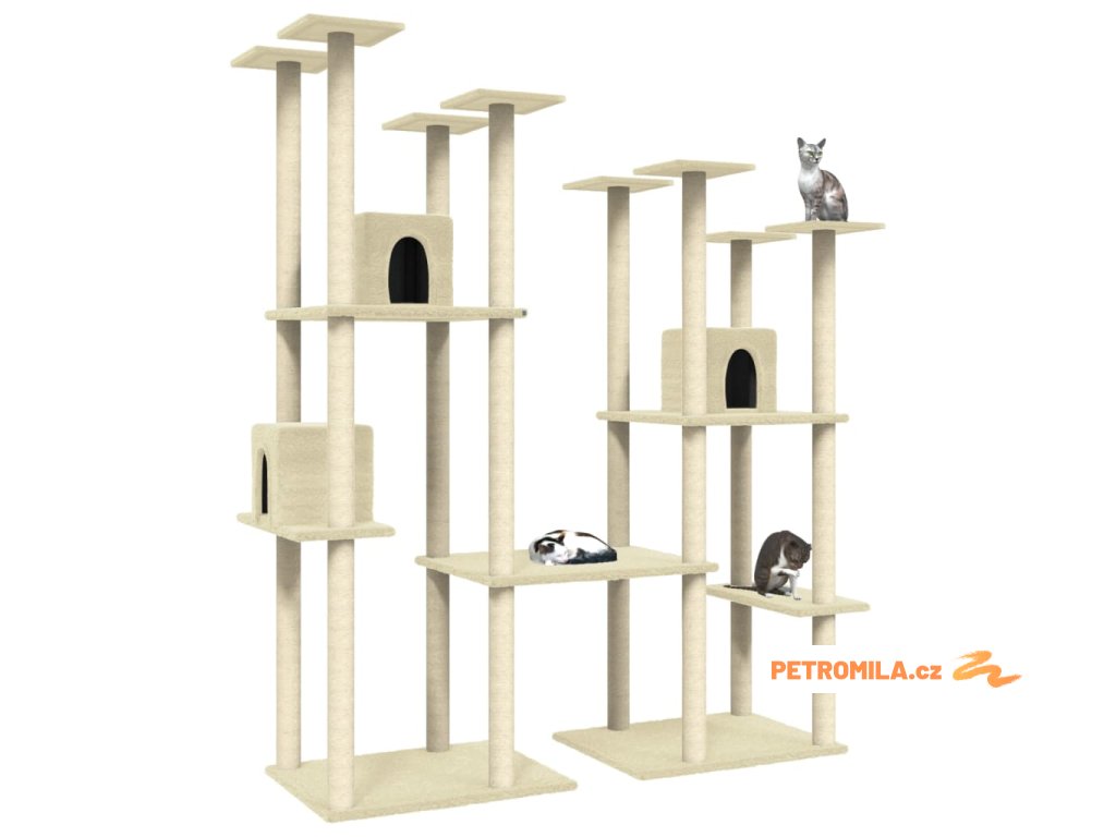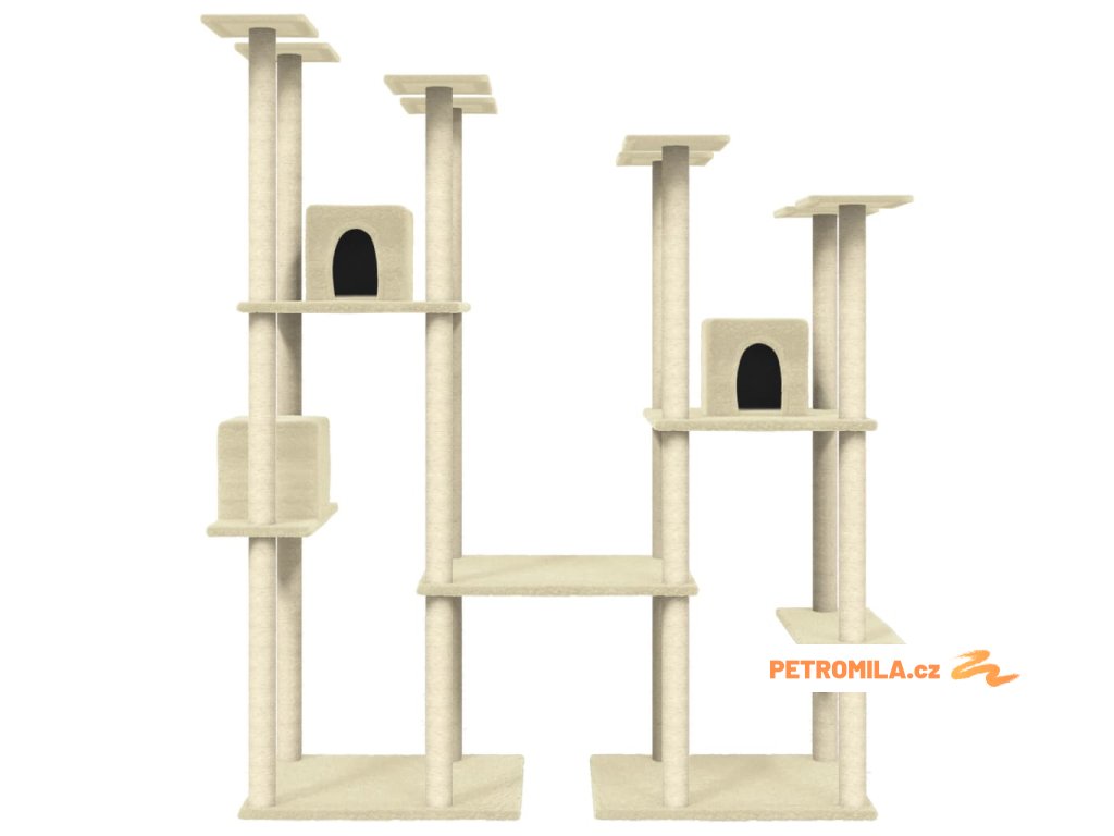 Škrabadlo pro kočky se sisalovými sloupky krémové 174 cm