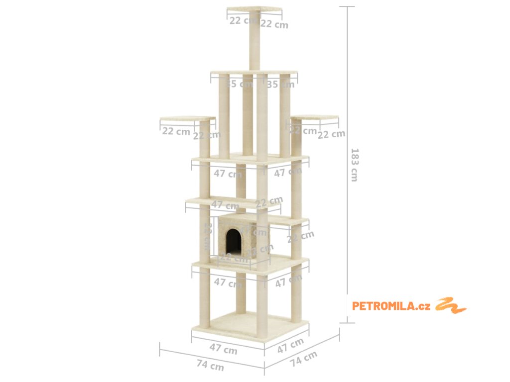Škrabadlo pro kočky se sisalovými sloupky krémové 183 cm