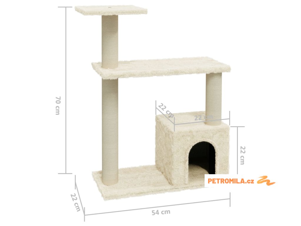 Škrabadlo pro kočky se sisalovými sloupky krémové 70 cm