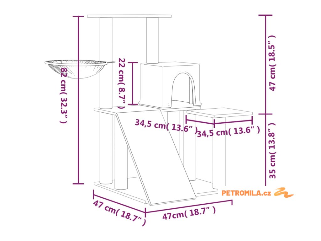 - Přírodní sisalové sloupky: Odolné a pevné sloupky s přírodním sisalem tohoto škrabadla dokonale uspokojí škrabací instinkt koček a zabrání jim poškrábat váš nábytek.