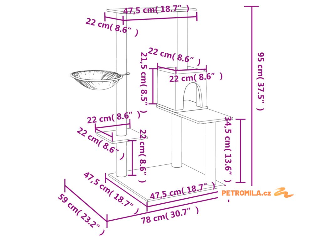 - Všestranná věž pro kočky: Víceúrovňový nábytek pro kočky je navržen s domečkem, košem a plošinami, které poskytují kočkám ideální místo pro šplhání, sezení, škrábání, schovávání se a také k odpočinku.