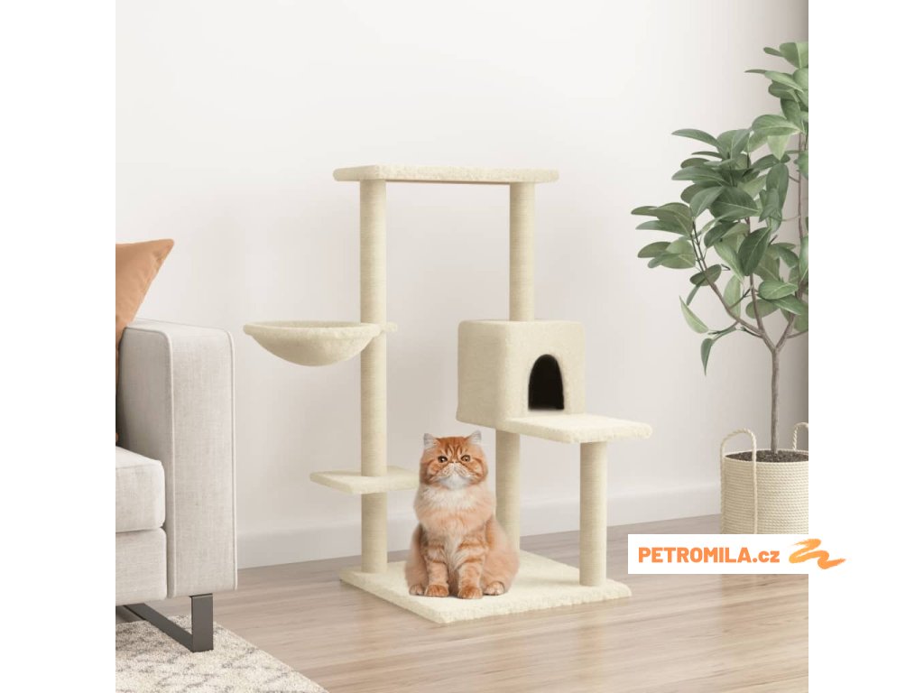 Škrabadlo pro kočky se sisalovými sloupky krémové 95 cm