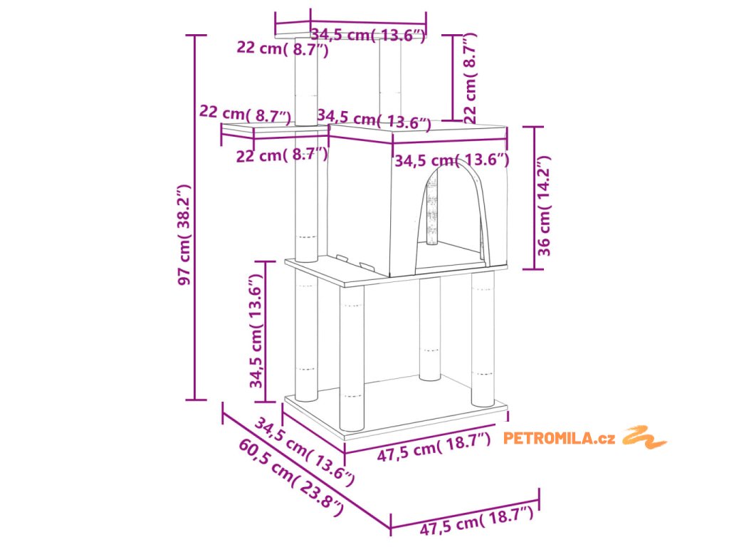 - Přírodní sisalové sloupky: Odolné a pevné sloupky s přírodním sisalem tohoto škrabadla dokonale uspokojí škrabací instinkt koček a zabrání jim poškrábat váš nábytek.