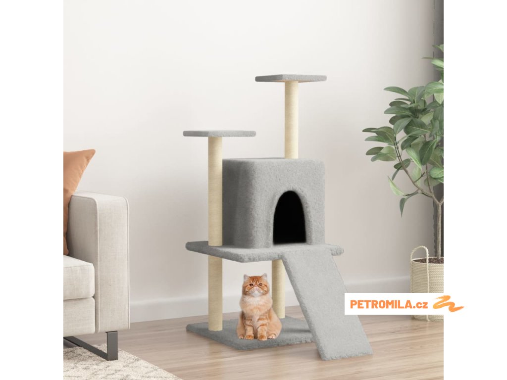Škrabadlo pro kočky se sisalovými sloupky světle šedé 110 cm