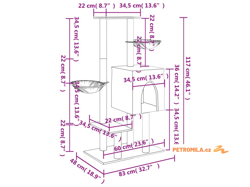 - Všestranná věž pro kočky: Víceúrovňový nábytek pro kočky je navržen s domečkem, 2 košíky a plošinami, které poskytují kočkám ideální místo pro šplhání, sezení, škrábání, schovávání se a také k odpočinku.
