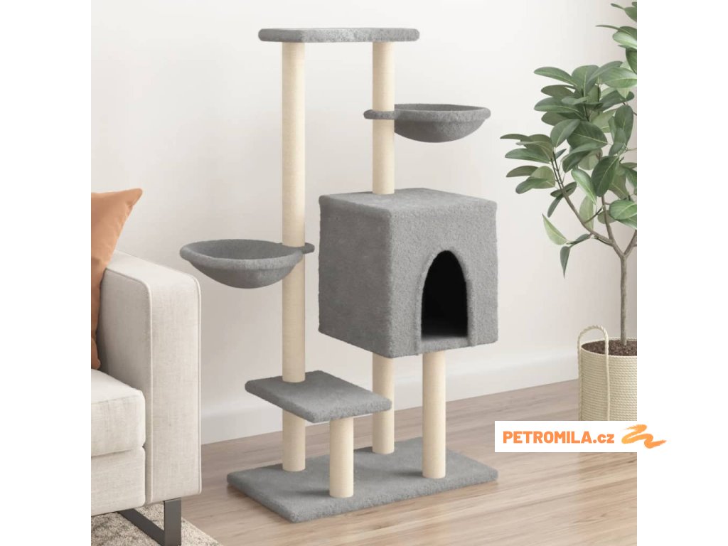 Škrabadlo pro kočky se sisalovými sloupky světle šedé 117 cm