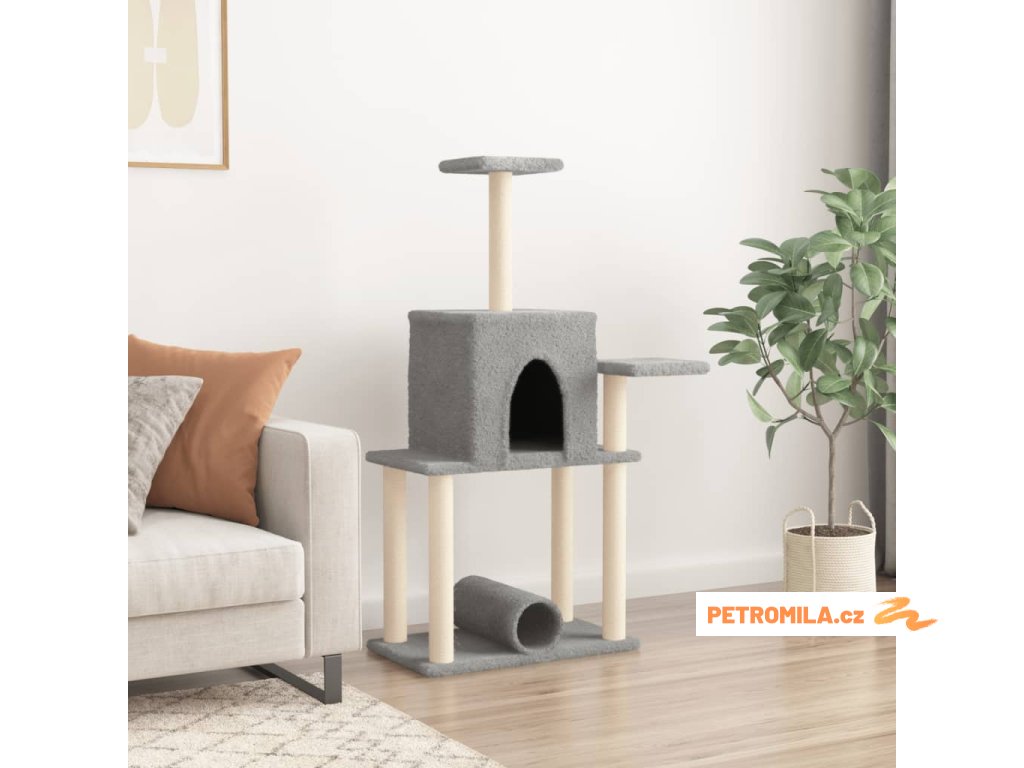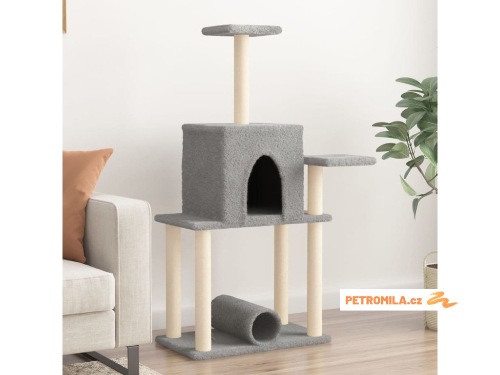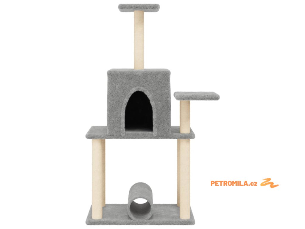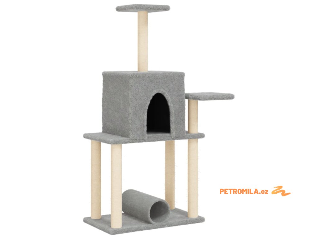Škrabadlo pro kočky se sisalovými sloupky světle šedé 122 cm