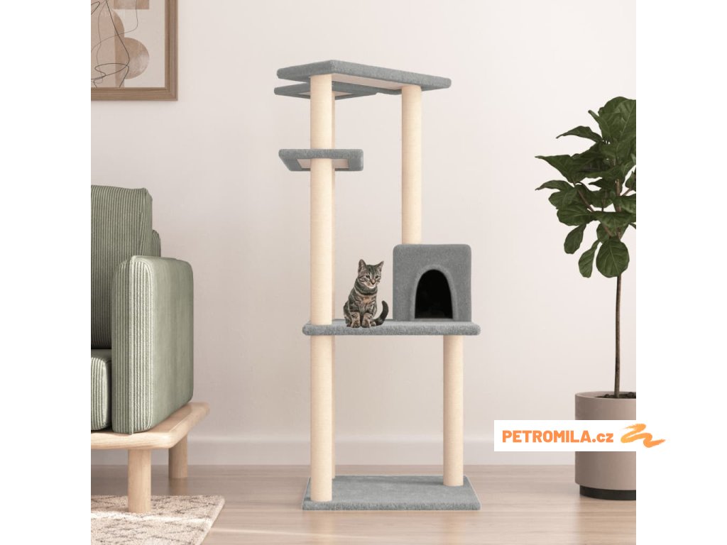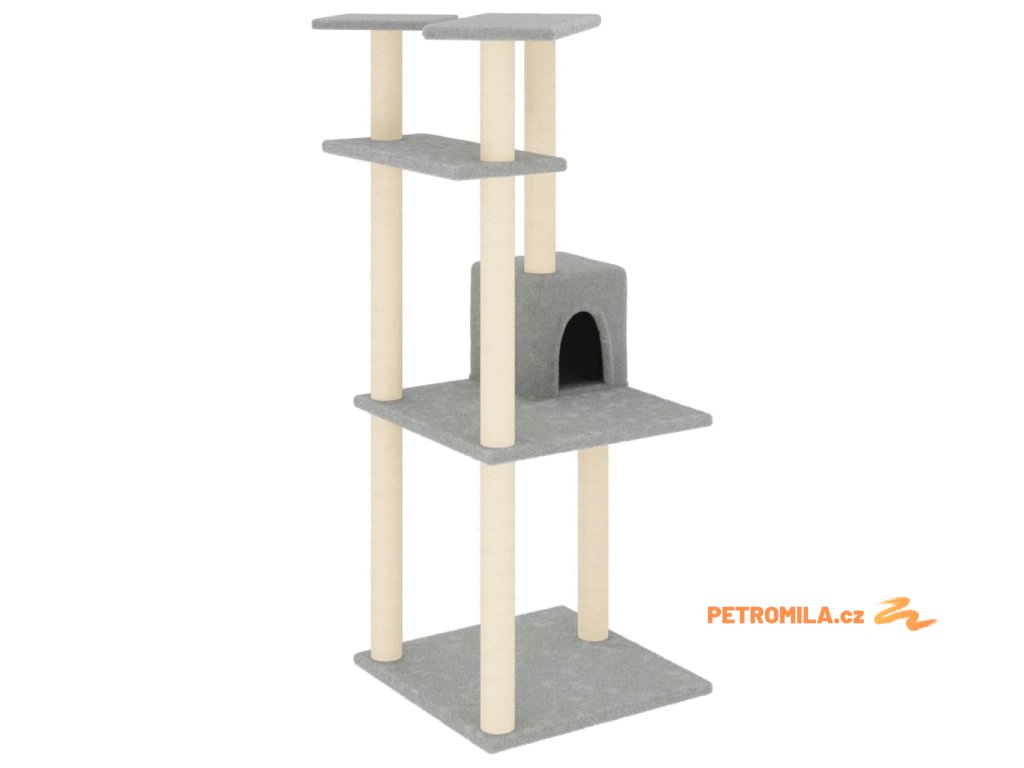 Škrabadlo pro kočky se sisalovými sloupky světle šedé 123 cm