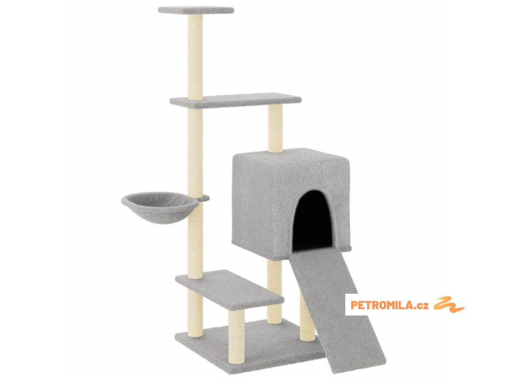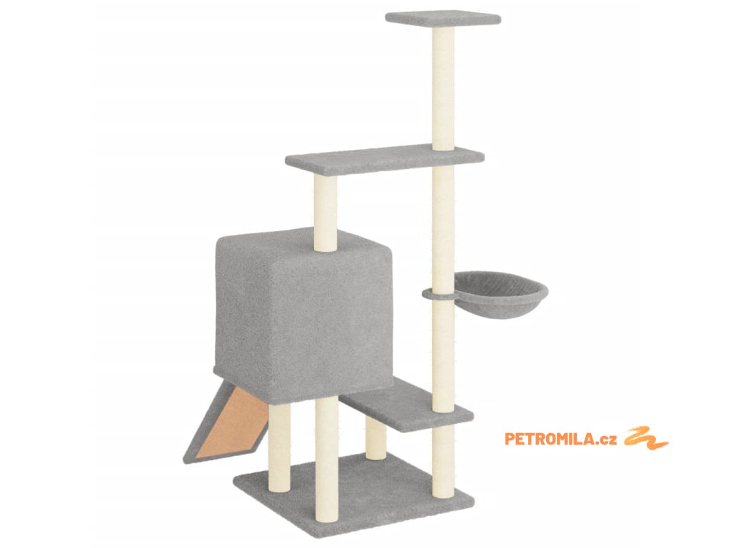 Škrabadlo pro kočky se sisalovými sloupky světle šedé 130,5 cm
