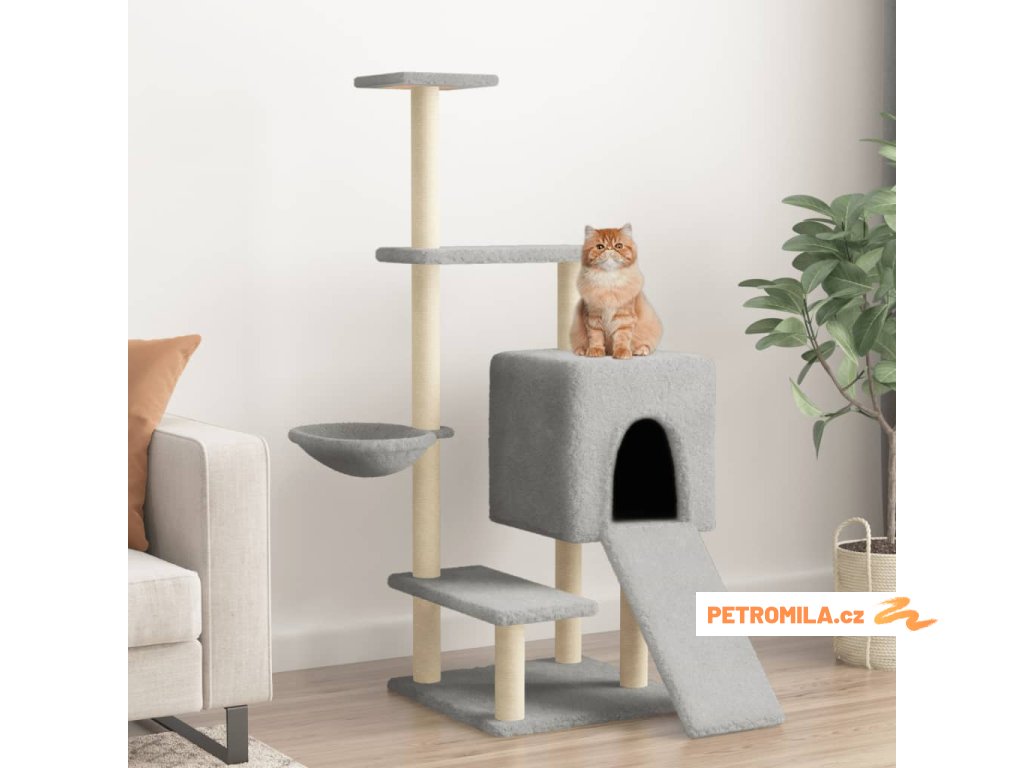 - Přírodní sisalové sloupky: Odolné a pevné sloupky s přírodním sisalem tohoto škrabadla dokonale uspokojí škrabací instinkt koček a zabrání jim poškrábat váš nábytek.