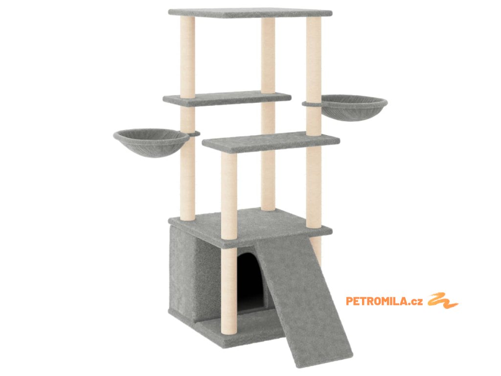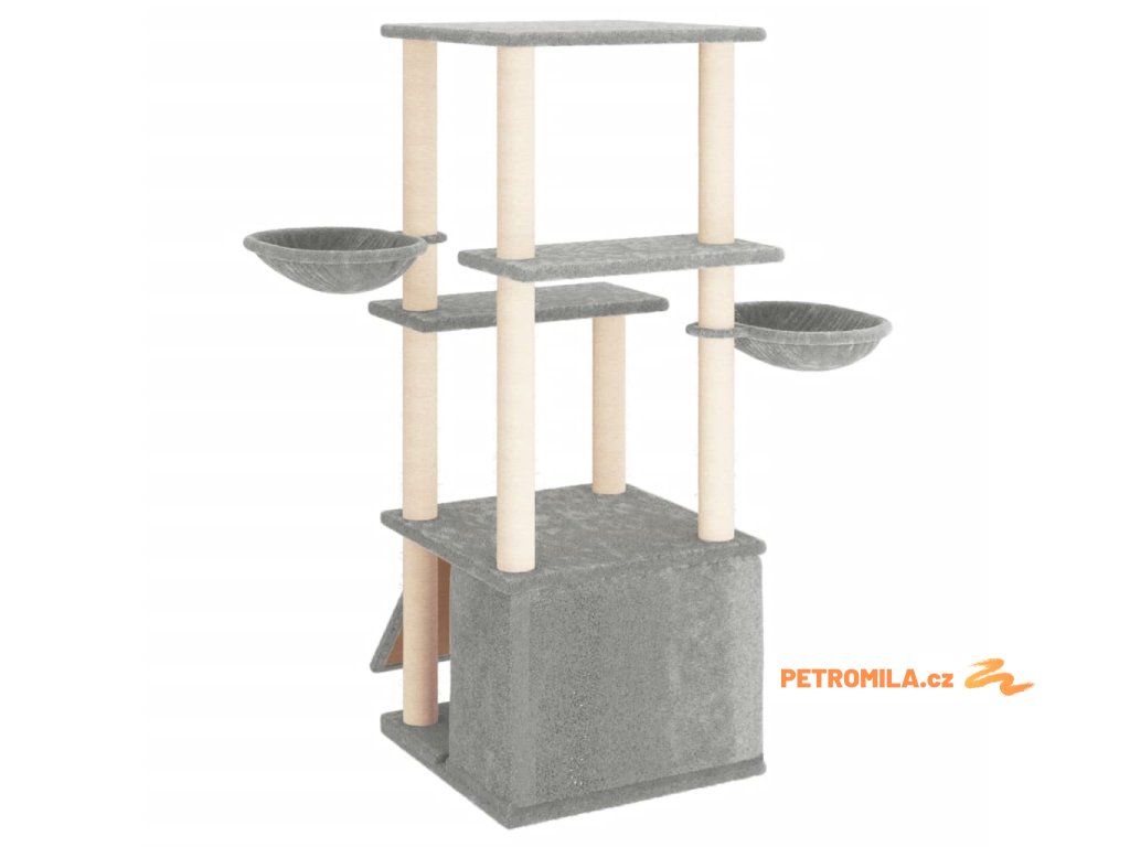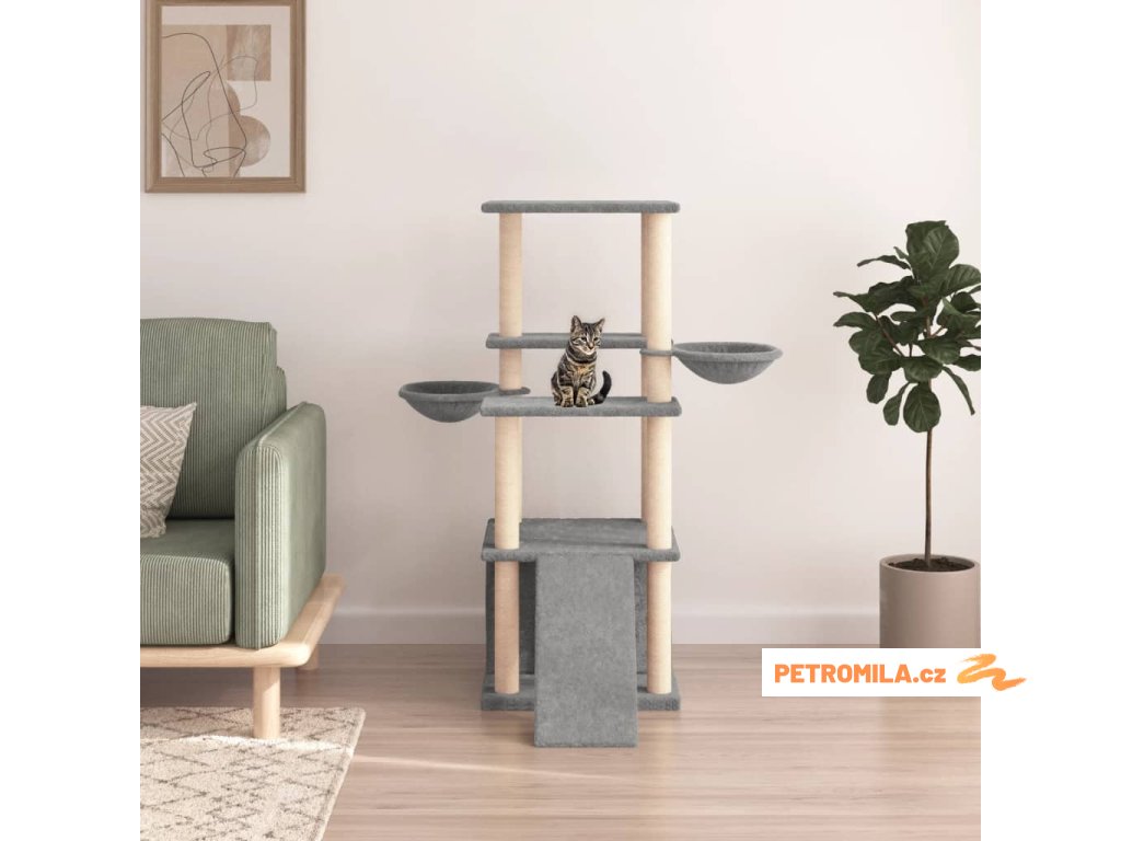 Škrabadlo pro kočky se sisalovými sloupky světle šedé 133 cm