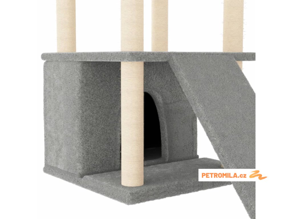 - Přírodní sisalové sloupky: Odolné a pevné sloupky s přírodním sisalem tohoto škrabadla dokonale uspokojí škrabací instinkt koček a zabrání jim poškrábat váš nábytek.