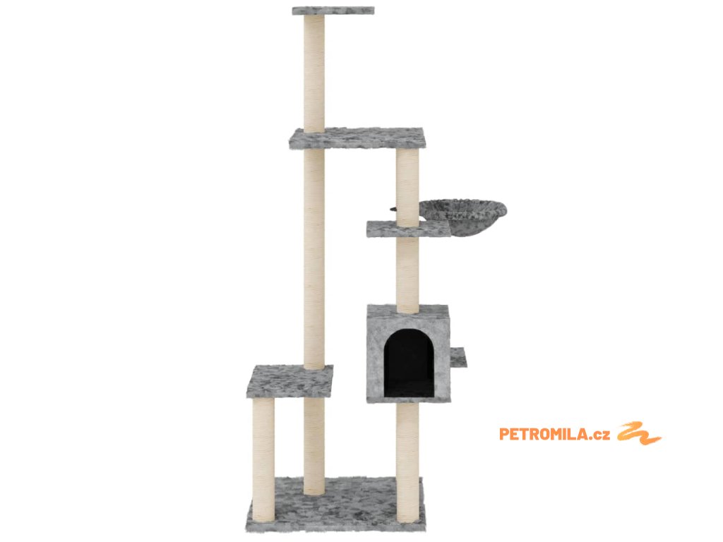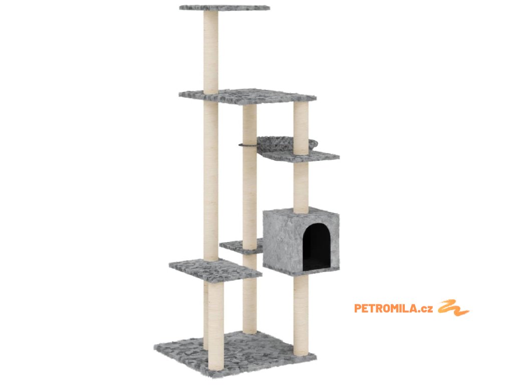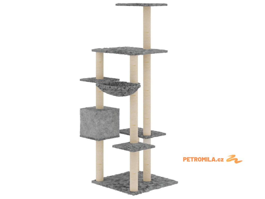 Škrabadlo pro kočky se sisalovými sloupky světle šedé 142 cm