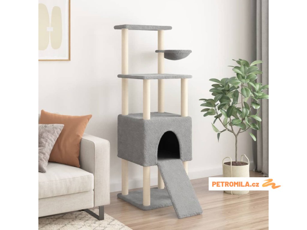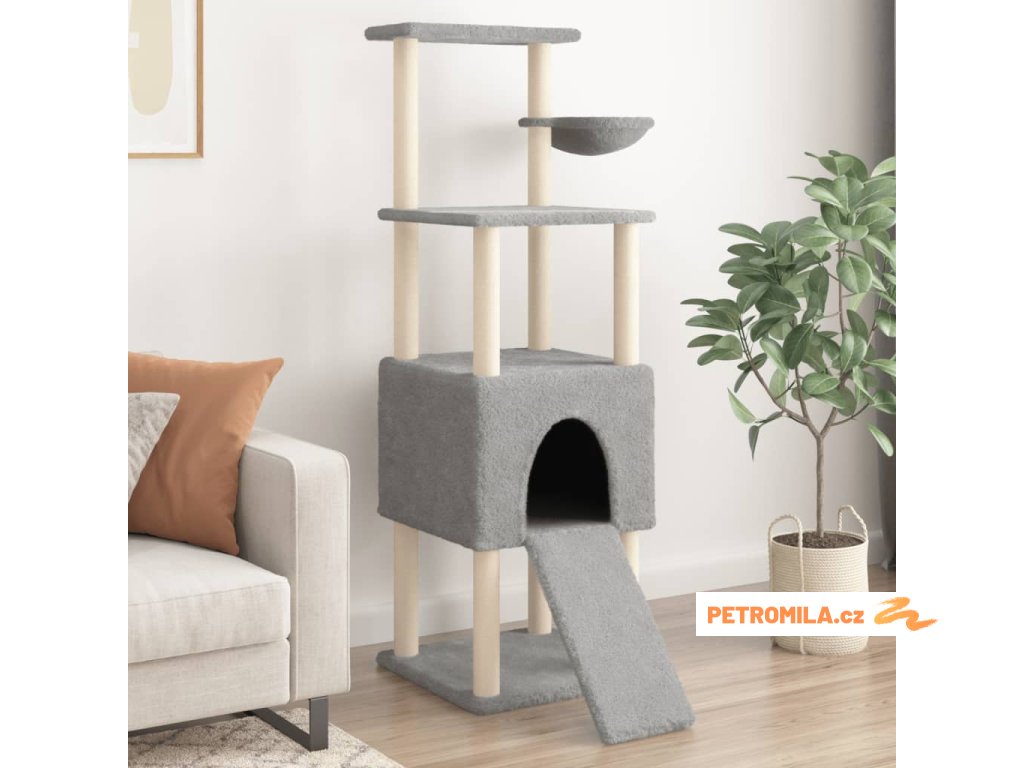 Škrabadlo pro kočky se sisalovými sloupky světle šedé 153 cm